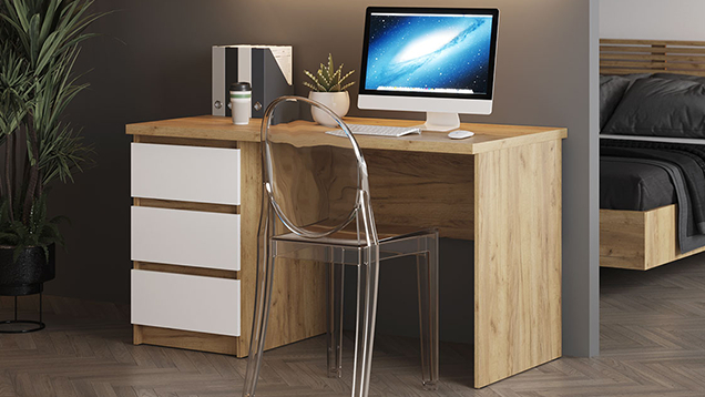 На столе достаточно места, чтобы комфортно расположить ноутбук или монитор с клавиатурой, лампу, раскрытую книгу или учебные пособия.
