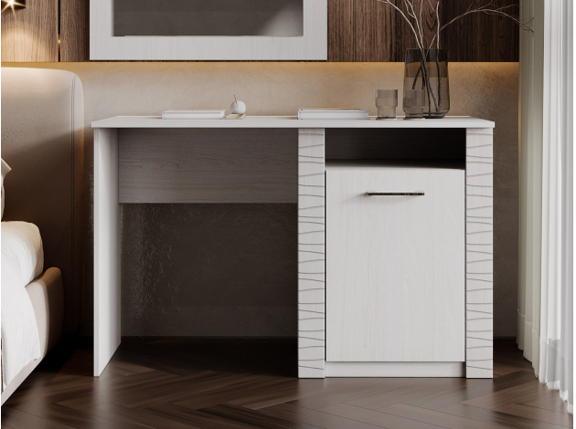 Письменный стол Гамма прекрасно подойдет для оформления домашнего кабинета или рабочего места. Тумба с полками позволит хранить в быстром доступе необходимые канцелярские принадлежности и документы.