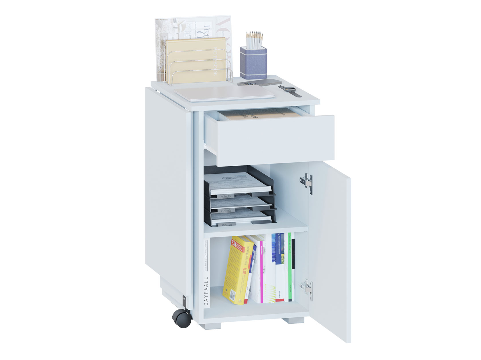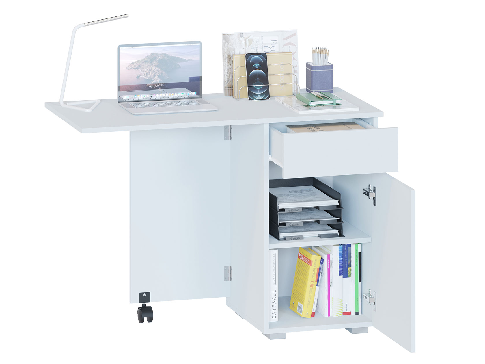 Письменный стол Гарби поможет организовать удобное место для учебы, работы, рукоделия или занятий творчеством. Компактная модель легко раскладывается, образуя просторную поверхность. Закрытые секции позволяют аккуратно хранить документы, канцелярию и другие принадлежности.