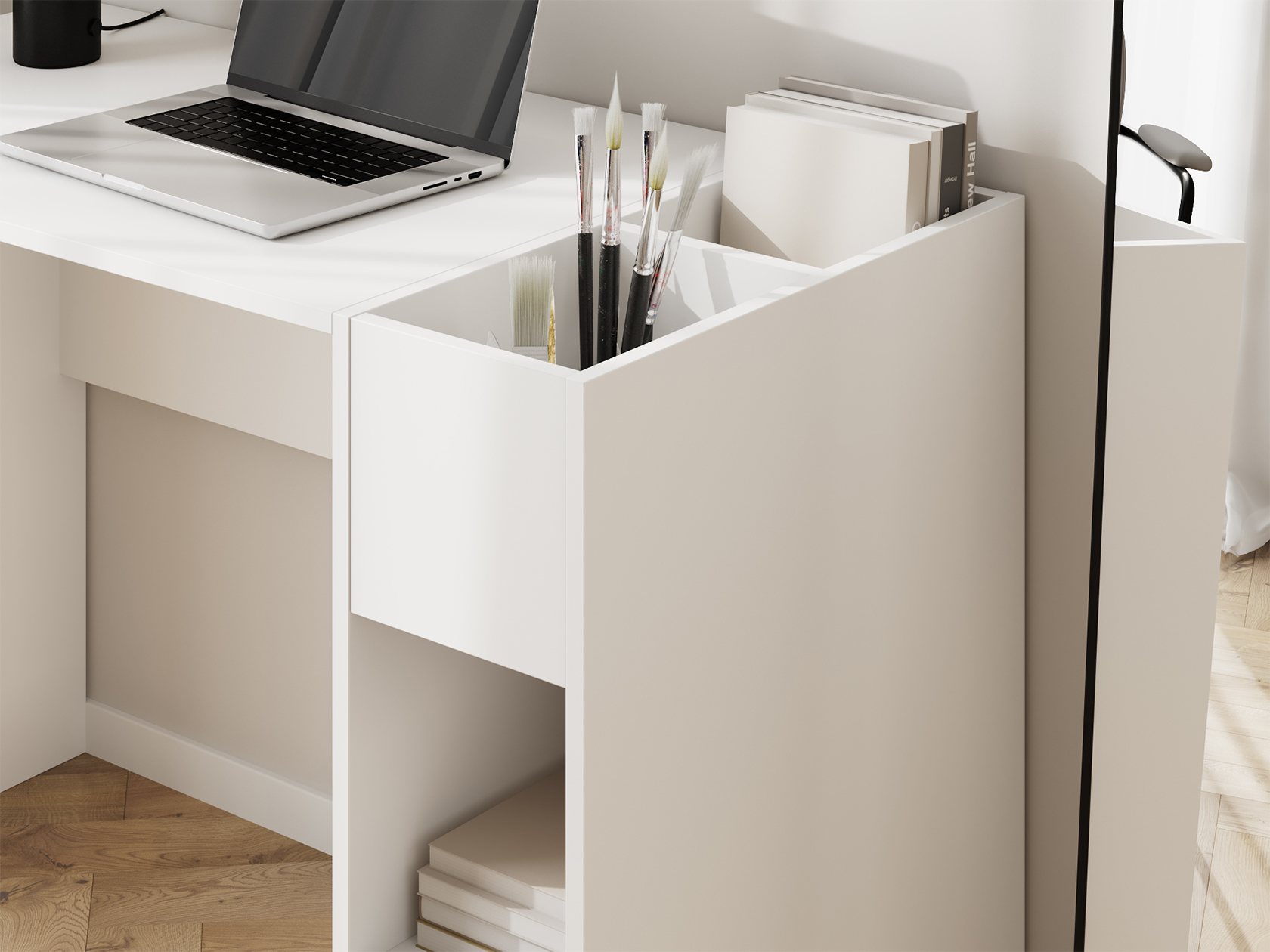 Письменный стол Кокоро поможет с комфортом обустроить зону для учебы, работы и саморазвития. На просторной поверхности поместятся ноутбук, книги и другие необходимые материалы. Модель дополнена тумбой с нишами и секциями, где удобно хранить канцелярию. Лаконичный дизайн легко интегрировать в современные стили интерьера.