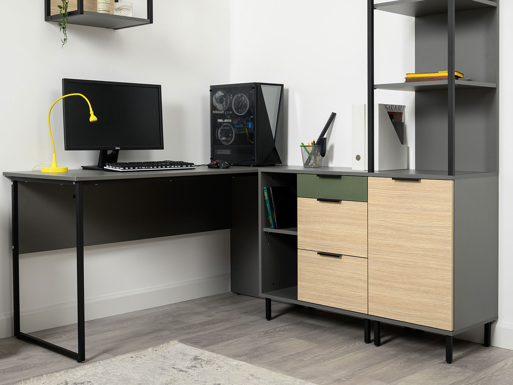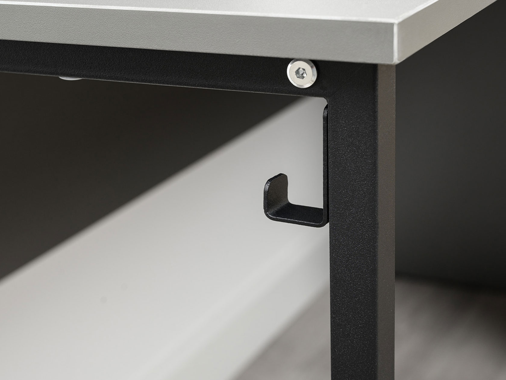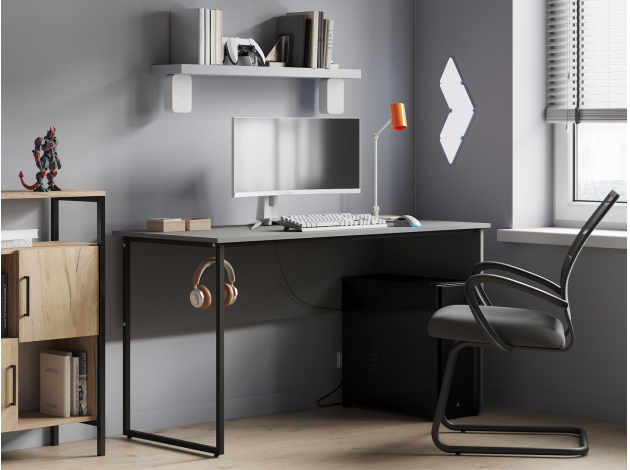 Письменный стол Марвэл дополнит обстановку в минималистичном стиле благодаря простой лаконичной конструкции. На столешнице найдется место для компьютера, клавиатуры и других принадлежностей для учебы и работы. Модель оснащена удобными крючками для наушников и прочих аксессуаров, что позволяет держать нужные вещи под рукой.