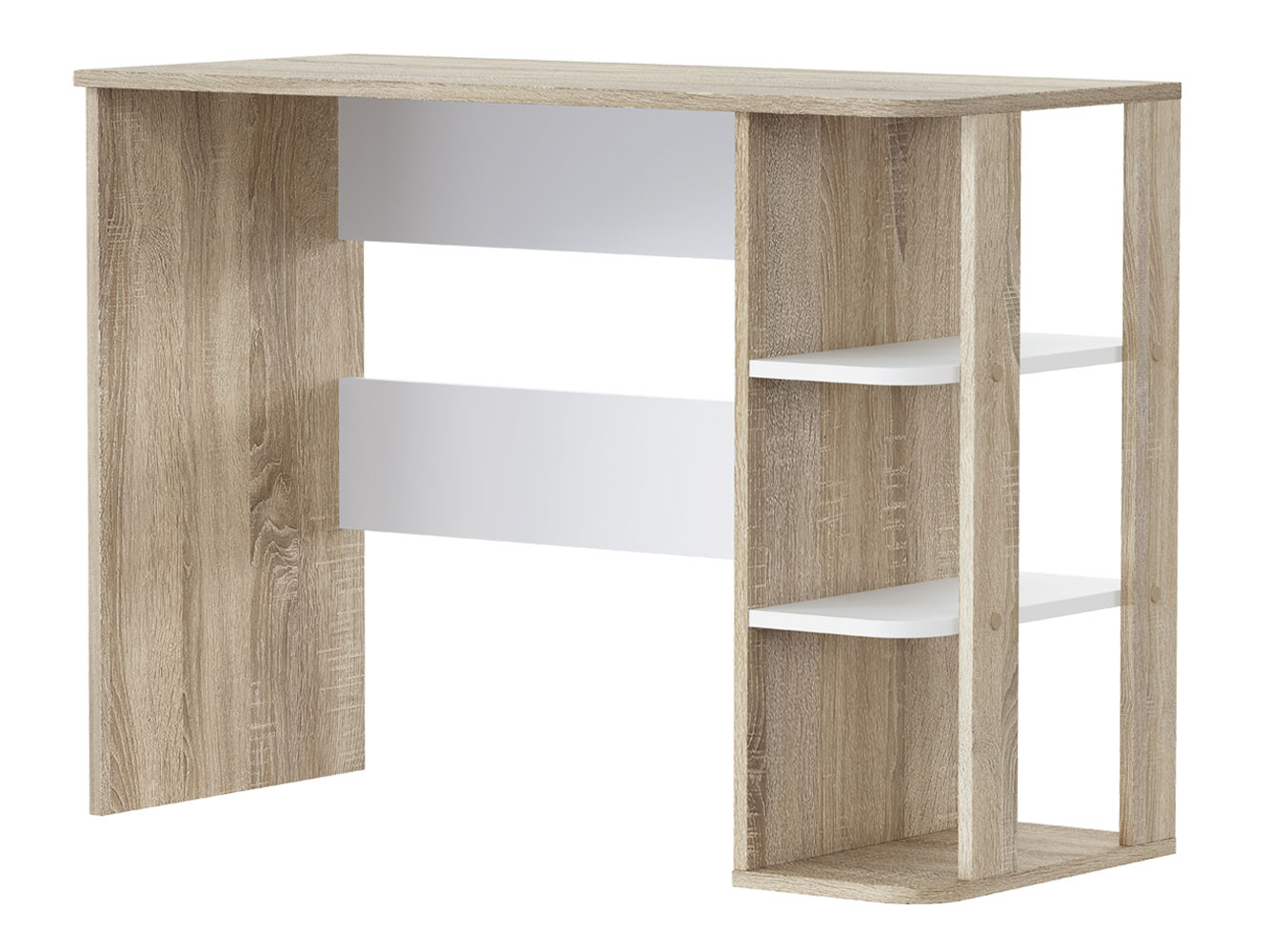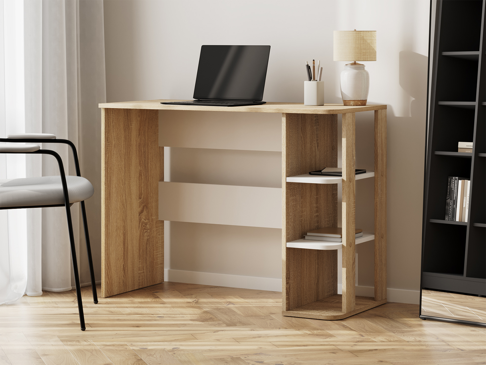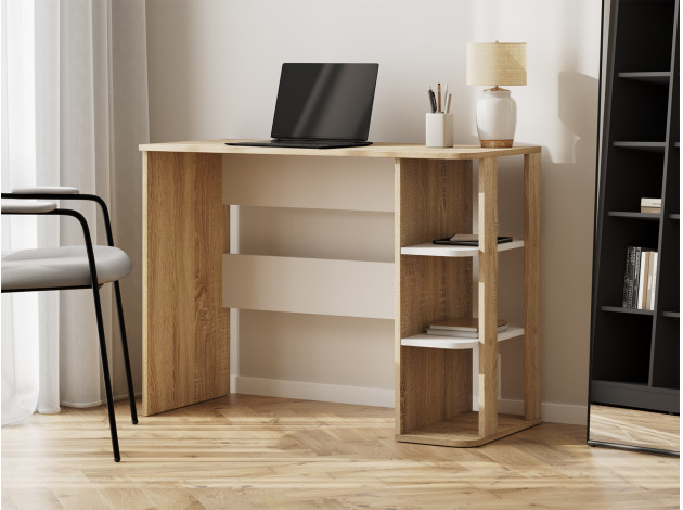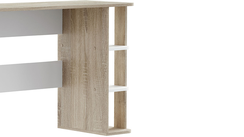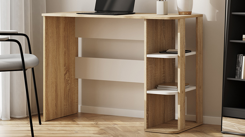 Письменный стол Мико станет основой рабочего уголка в квартире или офисе. Широкая поверхность позволяет разместить лампу, органайзеры, компьютер или ноутбук. Для остальных принадлежностей предусмотрены удобные открытые ниши. Благодаря универсальному дизайну модель можно адаптировать под различные стили меблировки.