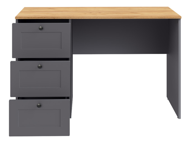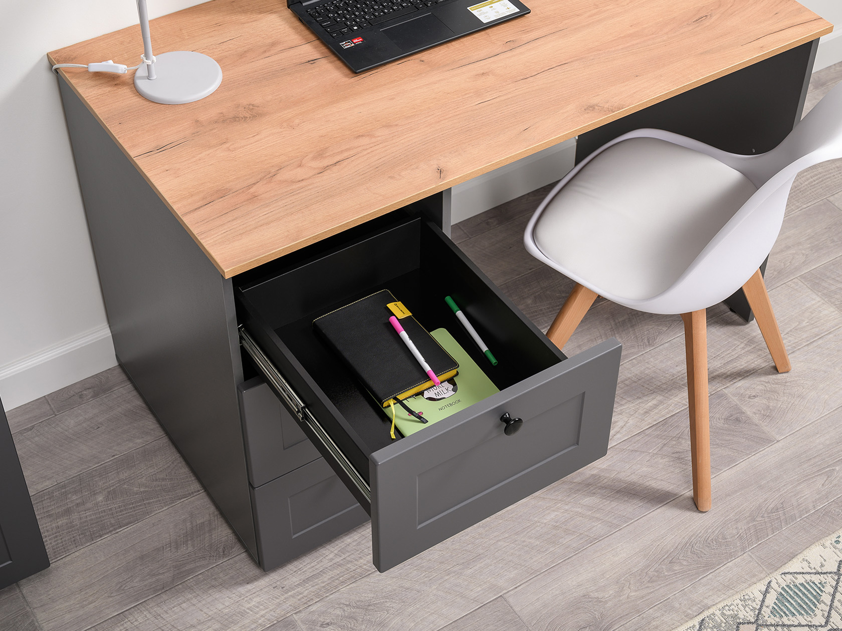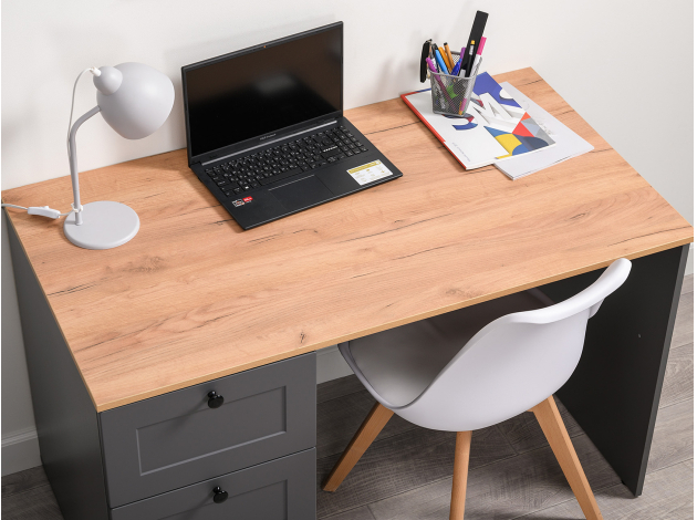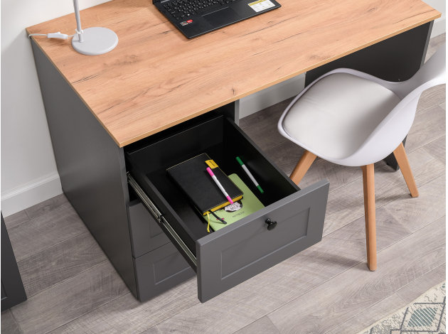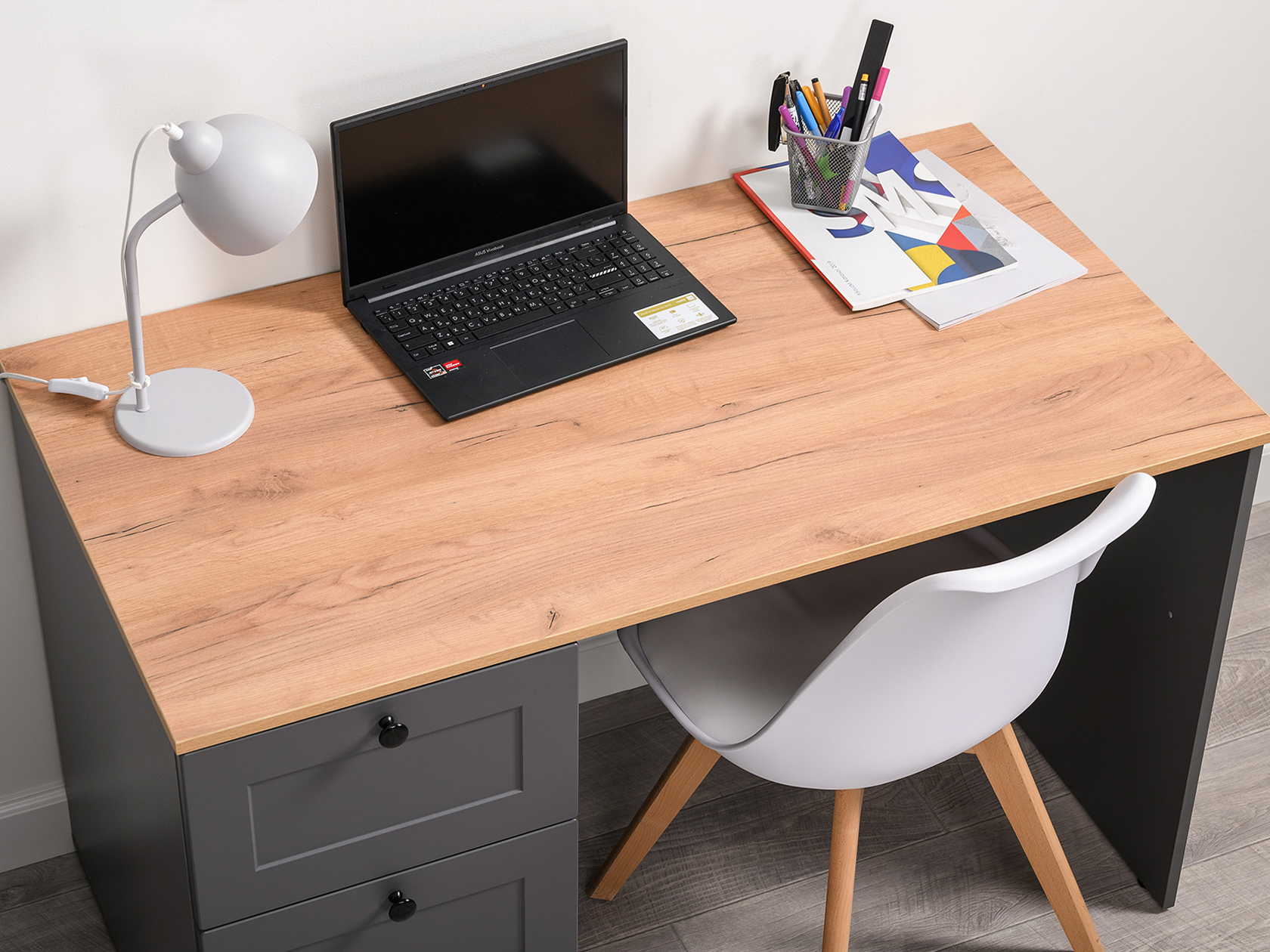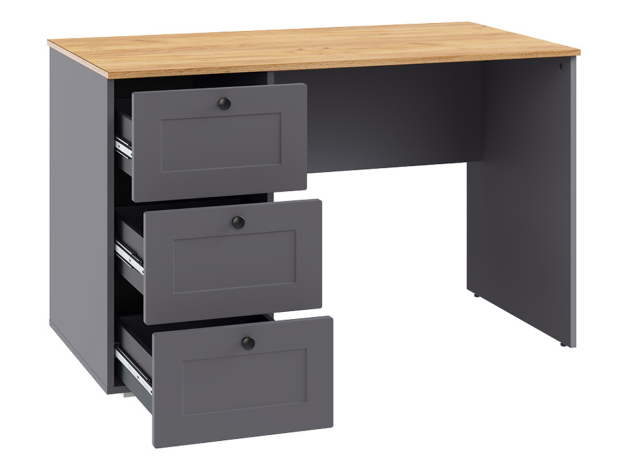 Письменный стол Остин — практичное решение для меблировки рабочего уголка. Просторная поверхность обеспечивает достаточно места для ноутбука или стационарного компьютера. Тумба с ящиками поможет поддерживать порядок в документах, канцелярии и различных мелочах. Выдвижные ящики открывают полный обзор содержимого. Стильный дизайн легко интегрируется в любой интерьер.