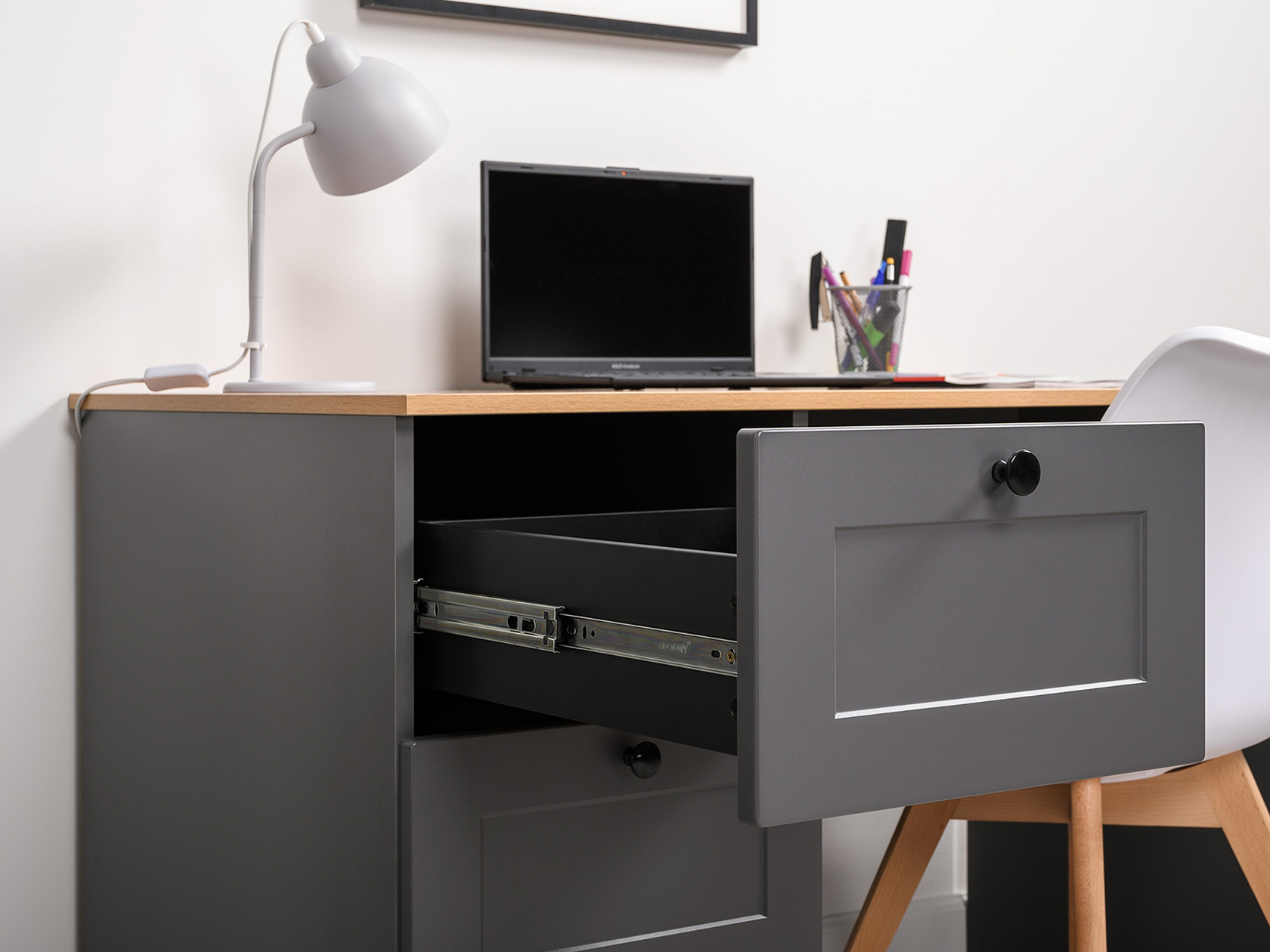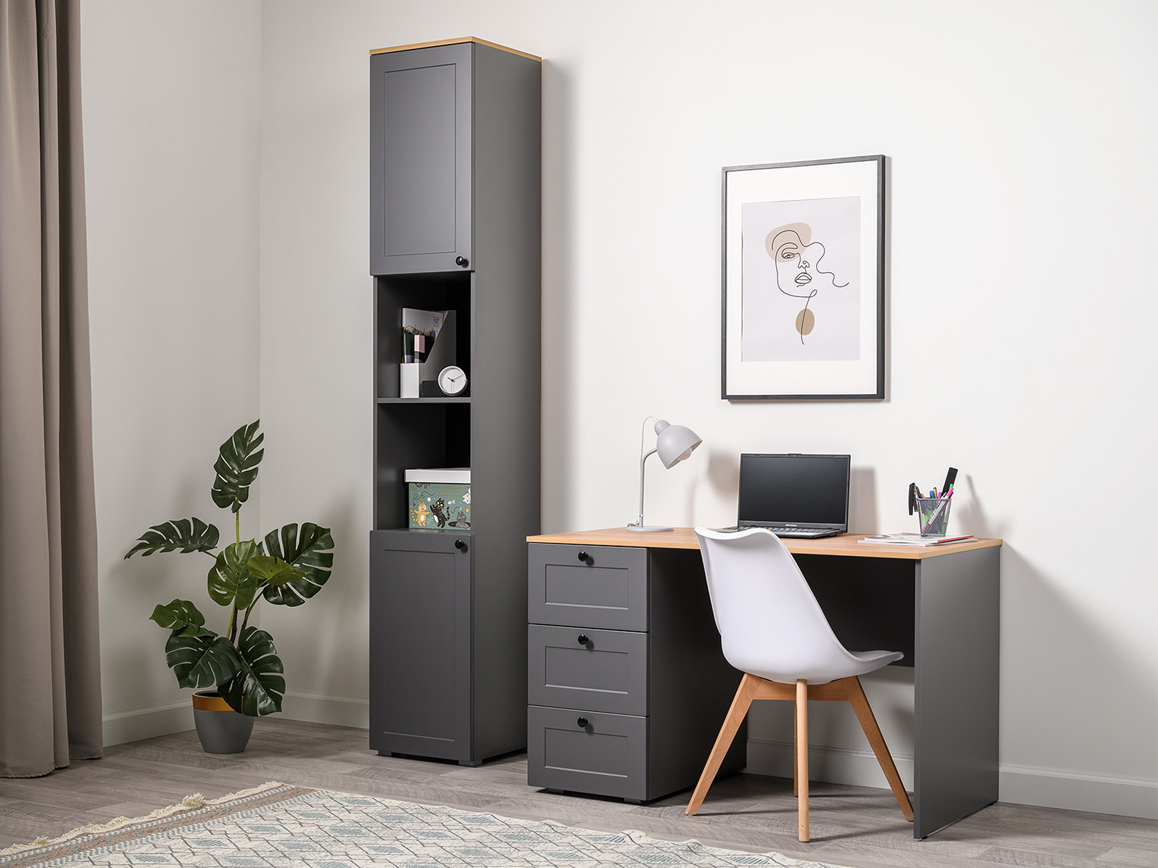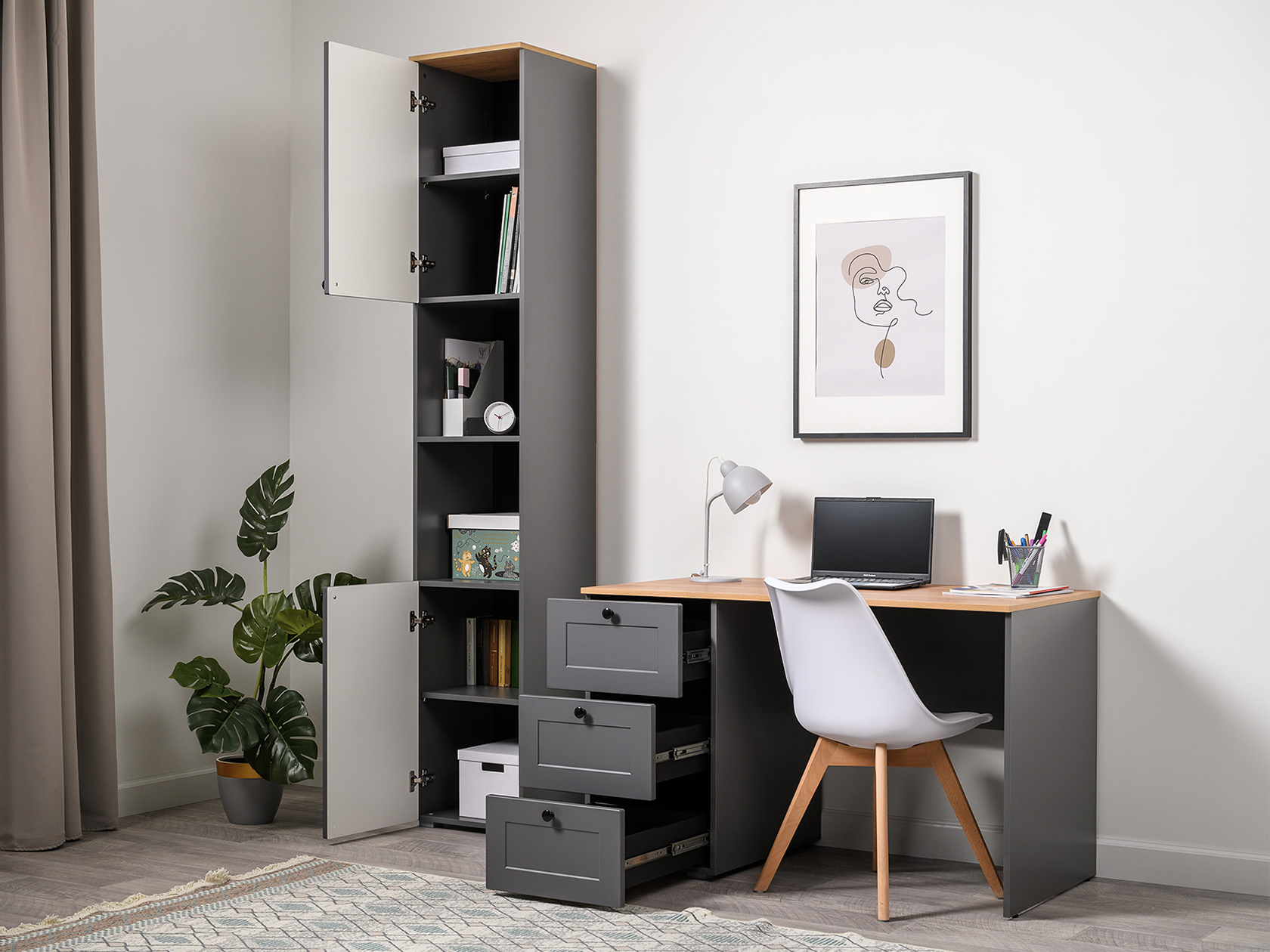Письменный стол Остин — практичное решение для меблировки рабочего уголка. Просторная поверхность обеспечивает достаточно места для ноутбука или стационарного компьютера. Тумба с ящиками поможет поддерживать порядок в документах, канцелярии и различных мелочах. Выдвижные ящики открывают полный обзор содержимого. Стильный дизайн легко интегрируется в любой интерьер.