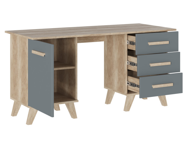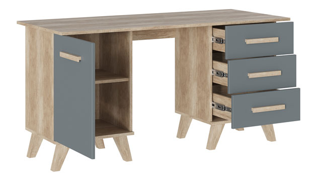 Письменный стол Вега Скандинавия поможет обустроить комфортную рабочую зону и прекрасно дополнит интерьер спальни, гостиной или кабинета. Для документов, письменных и канцелярских принадлежностей всегда найдется место в выдвижных ящиках или в секции с распашной дверцей.