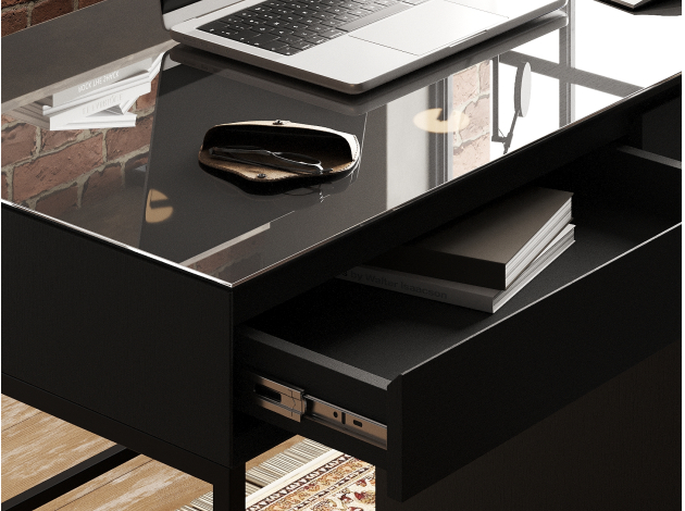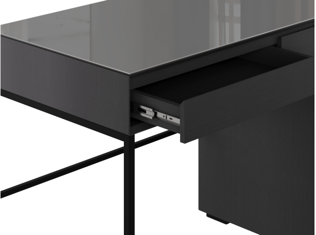 Письменный стол Проксима — современное и функциональное решение для рабочего и домашнего кабинета. Выдвижные ящики двигаются плавно и бесшумно. Тумба с дверцей позволяет удобно организовать хранение документов и аксессуаров. На поверхности используется закаленное стекло для повышенной прочности, а на фасадах — окрашенное, которое защищено от повреждений благодаря кромлению под углом 45 градусов.