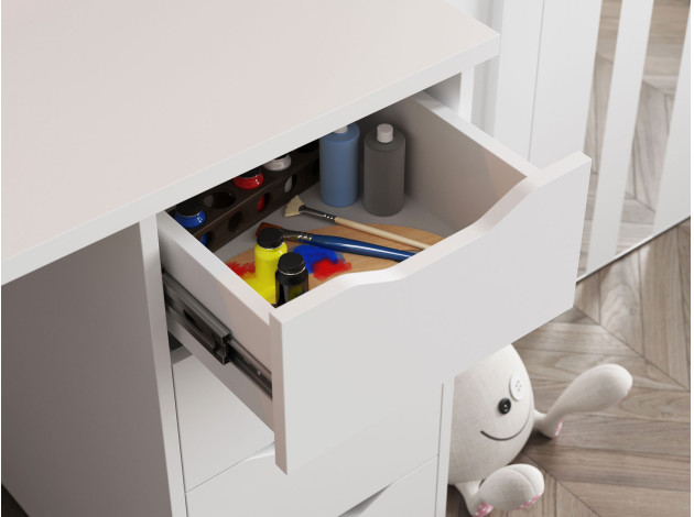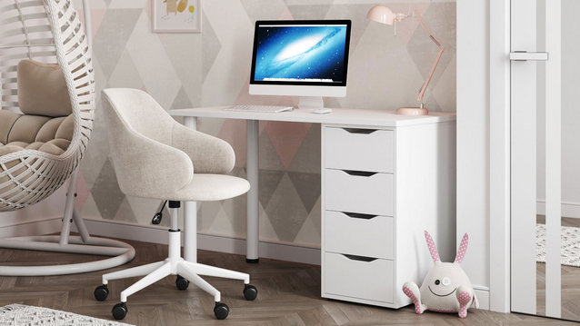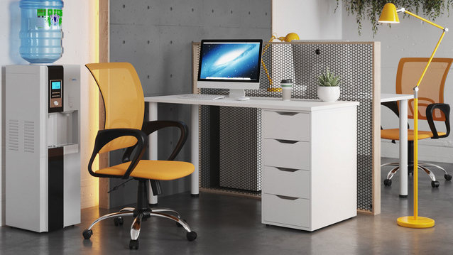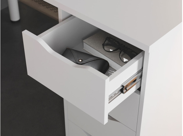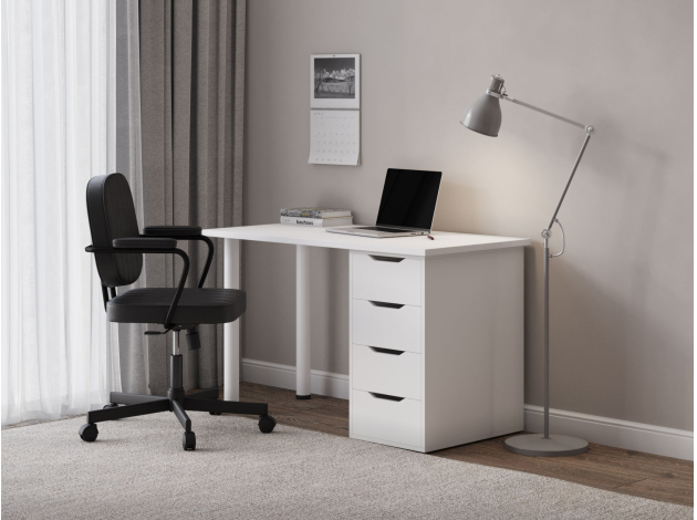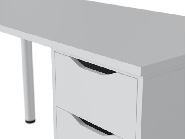 Письменный стол Адлер станет основой рабочего уголка в офисе или квартире. Широкая столешница позволяет комфортно разместить лампу, органайзеры, компьютер или ноутбук. Для остальных принадлежностей предусмотрены удобные выдвижные ящики. Благодаря универсальному дизайну стол отлично сочетается с другой мебелью.