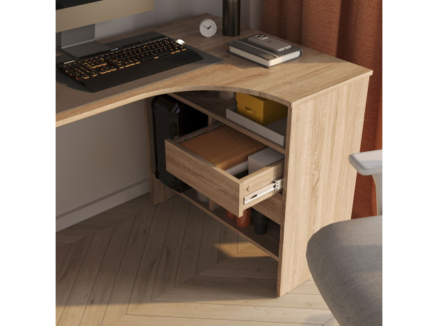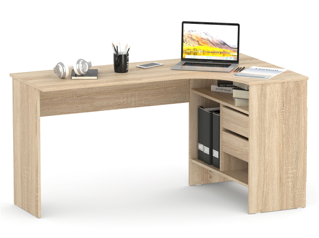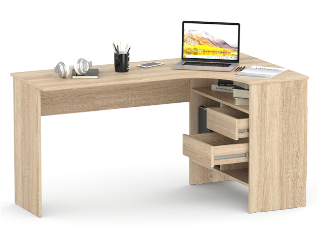 Угловой письменный стол Шепард — идеальное решение для обустройства полноценного рабочего места в домашнем кабинете или офисе. На широкой столешнице найдется место для большого монитора, клавиатуры или ноутбука, а также сопутствующей техники. В выдвижных ящиках и открытых отделениях удобно хранить книги и канцелярию.