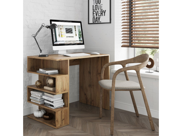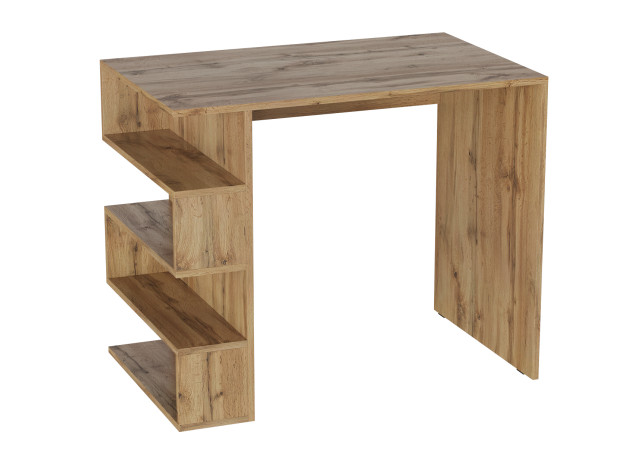 Письменный стол Штерн — это комбинация удобной рабочей поверхности и оригинальной системы хранения в виде встроенного стеллажа. Благодаря оптимальным габаритам модель подойдет как для отдельного кабинета, так и для небольшой рабочей зоны в гостиной, спальне или подростковой комнате.