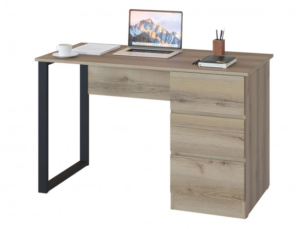 Стильный письменный стол Геральт — идеальное решение для оформления вашего рабочего уголка. За счет лаконичного дизайна модель подойдет к любому современному интерьеру, а благодаря интересному решению с металлической опорой также отлично дополнит обстановку в стиле лофт.