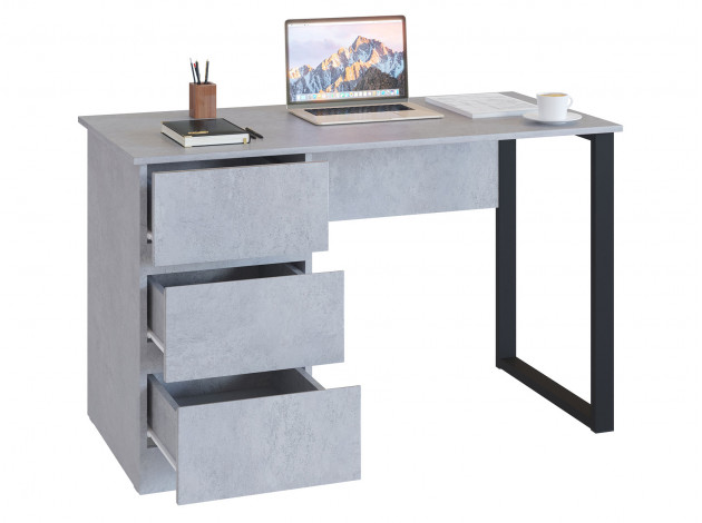 Стильный письменный стол Геральт — идеальное решение для оформления вашего рабочего уголка. За счет лаконичного дизайна модель подойдет к любому современному интерьеру, а благодаря интересному решению с металлической опорой также отлично дополнит обстановку в стиле лофт.