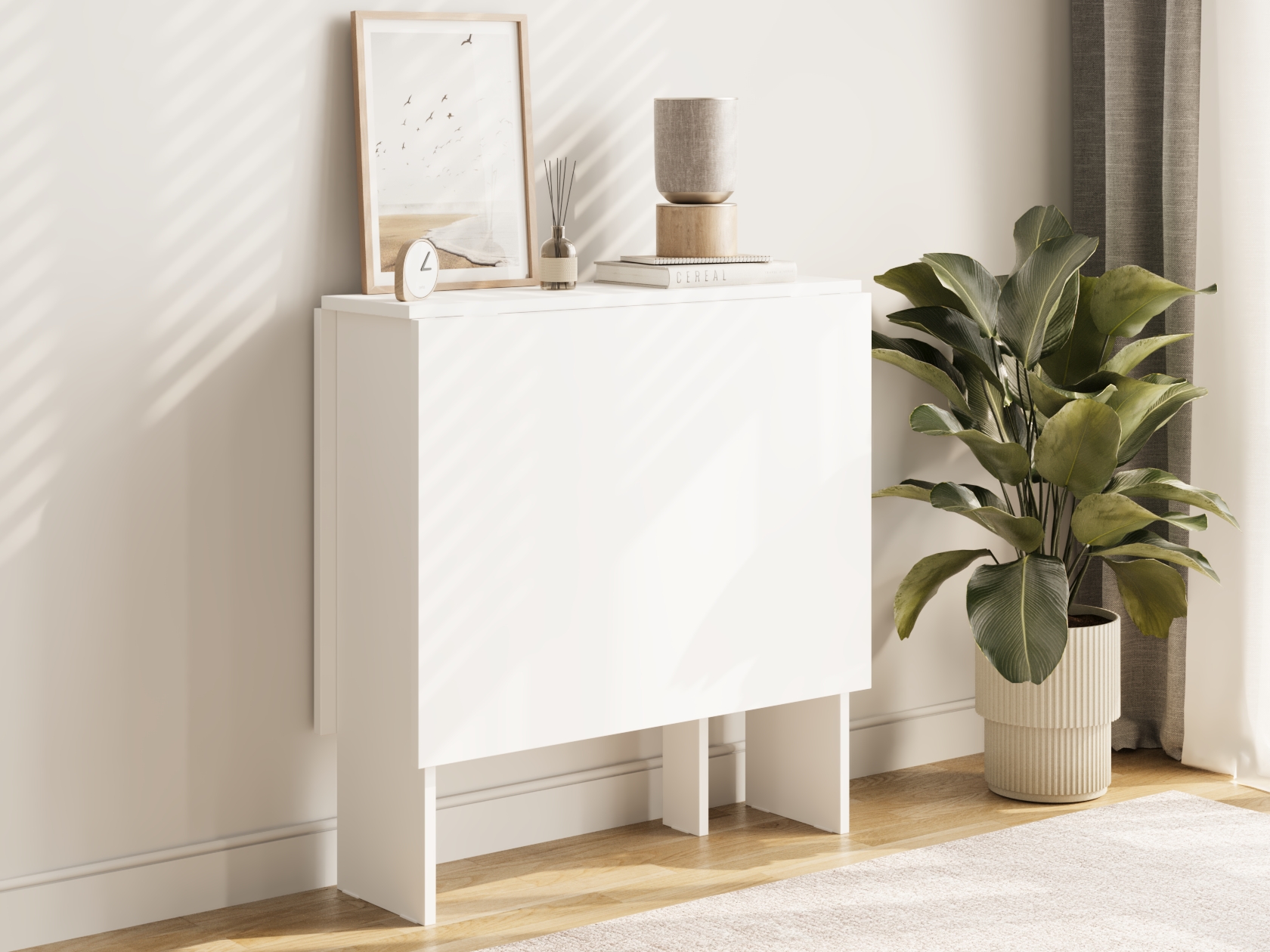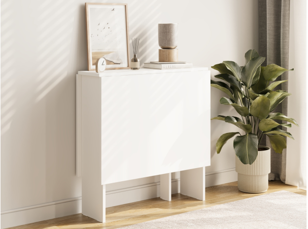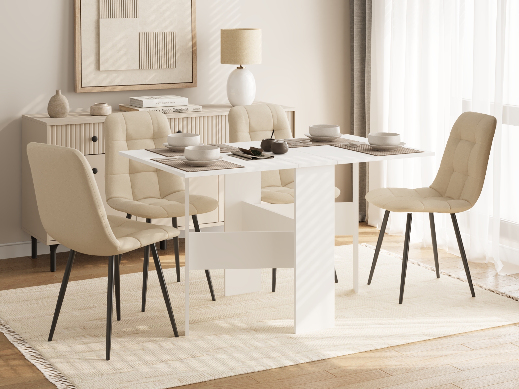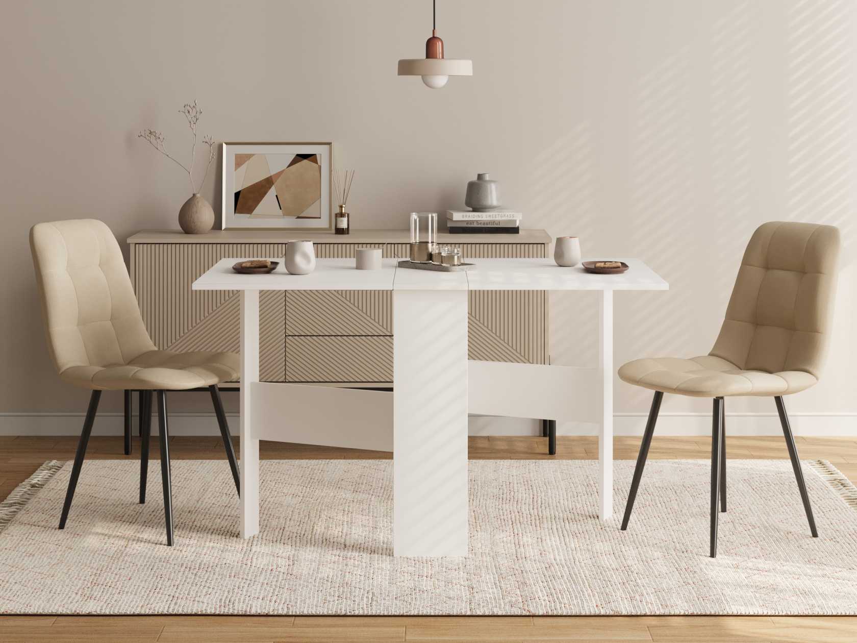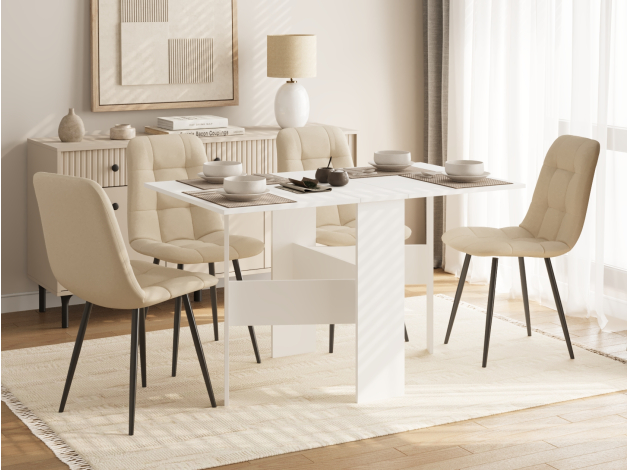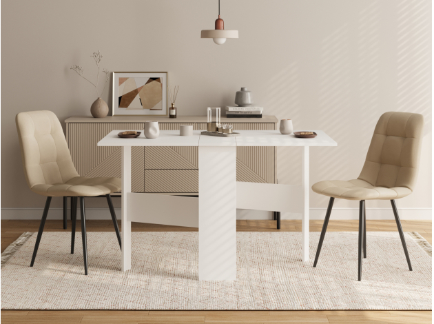 Стол-книжка Дебр станет отличным помощником для гостеприимных хозяев. Раскладная конструкция позволяет расположить несколько человек и быстро организовать домашнее застолье. В сложенном виде стол занимает мало места и может использоваться в качестве тумбы. Минималистичный дизайн хорошо адаптируется под разные стили интерьера.