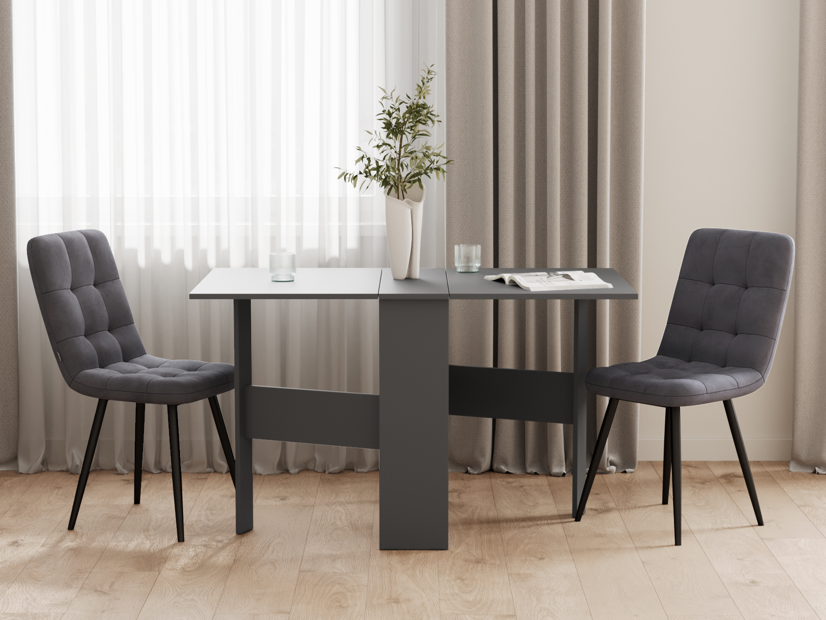 Чтобы разложить стол, нужно поднять одну створку столешницы, выдвинуть опору, а затем плавно опустить створку на основание стола.