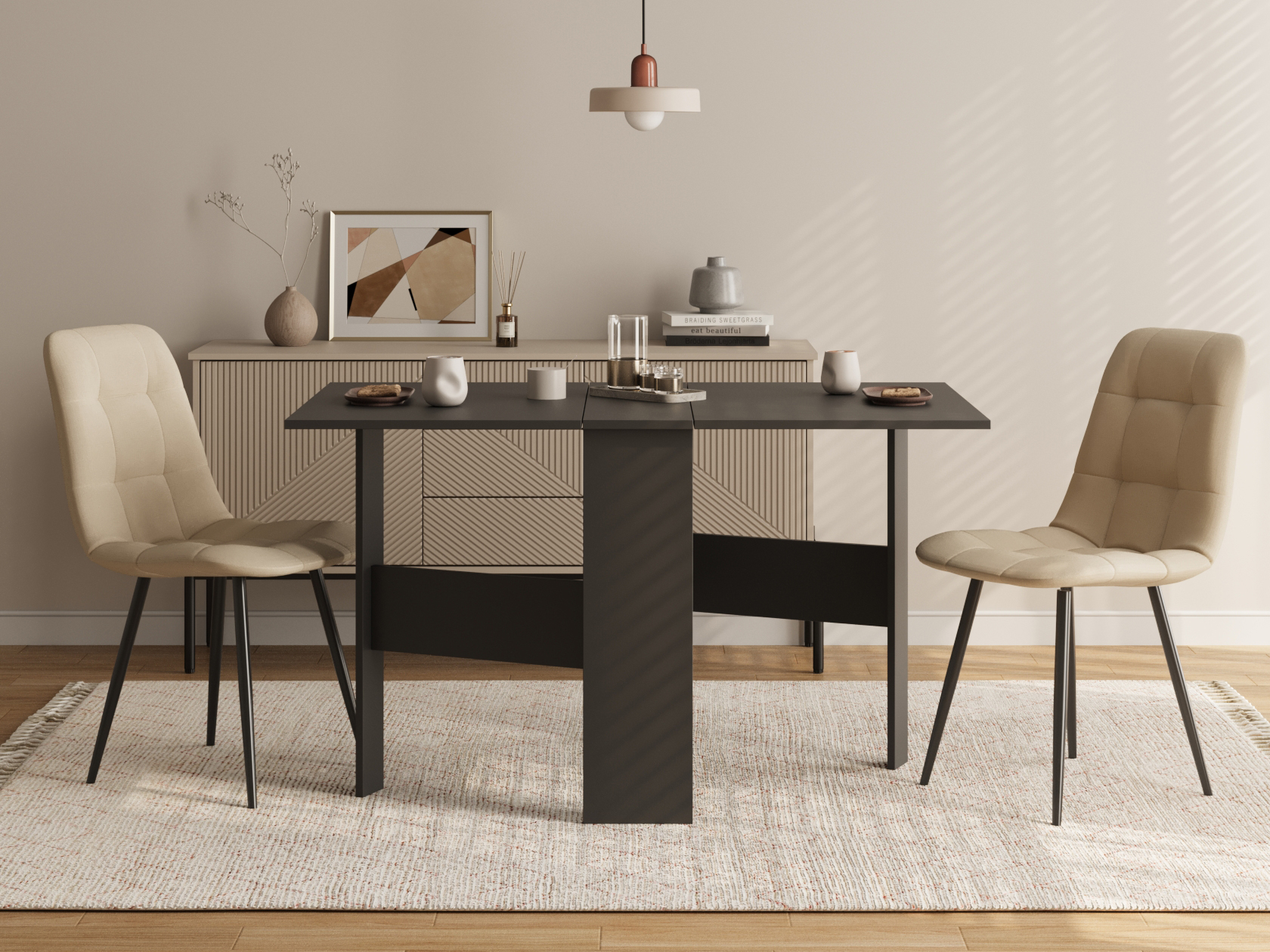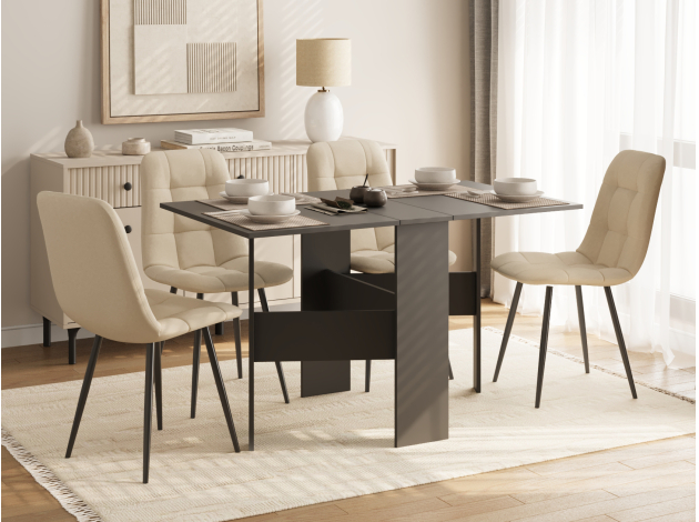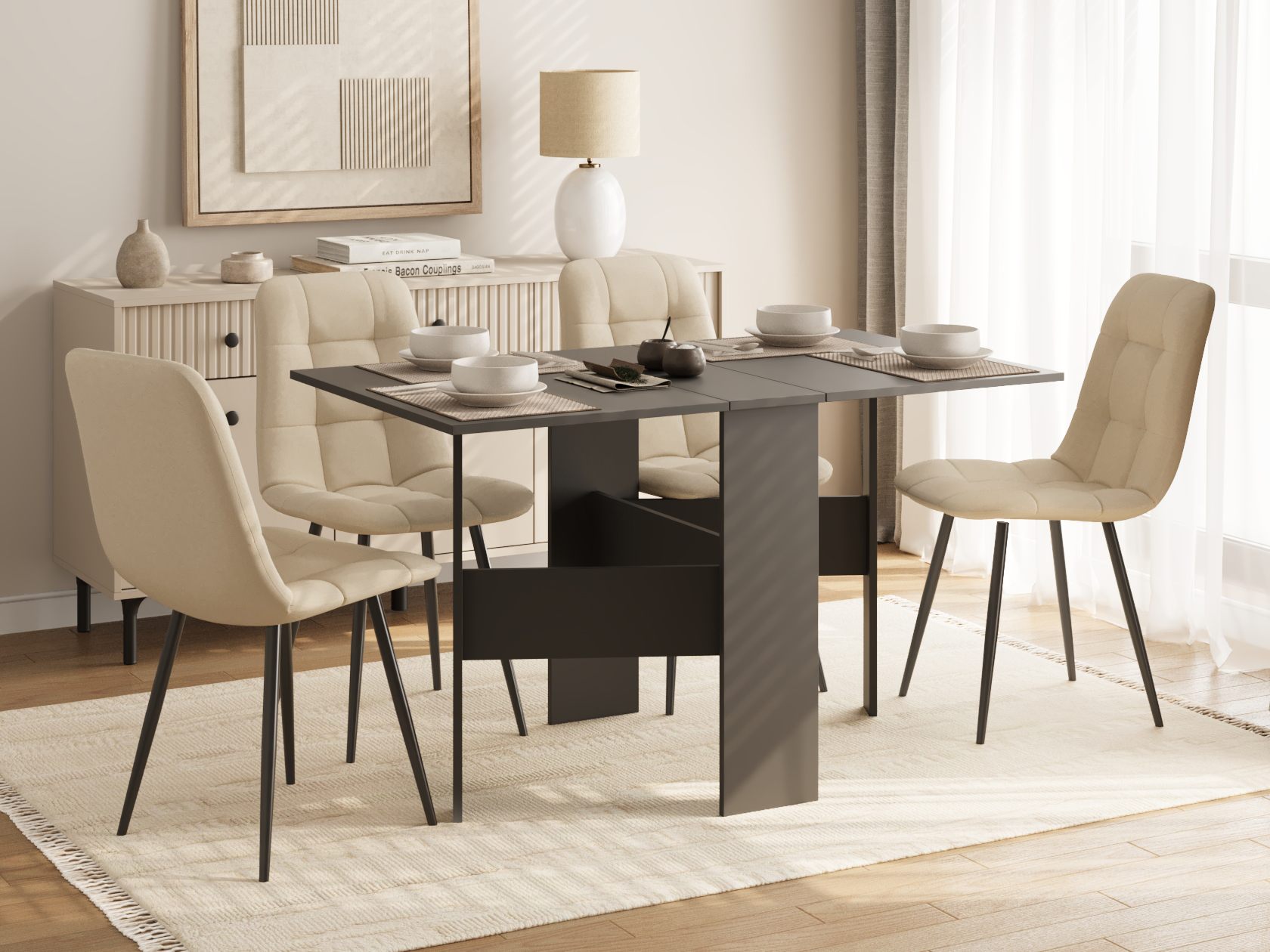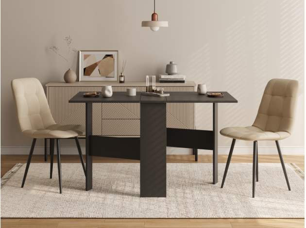 Стол-книжка Дебр станет отличным помощником для гостеприимных хозяев. Раскладная конструкция позволяет расположить несколько человек и быстро организовать домашнее застолье. В сложенном виде стол занимает мало места и может использоваться в качестве тумбы. Минималистичный дизайн хорошо адаптируется под разные стили интерьера.