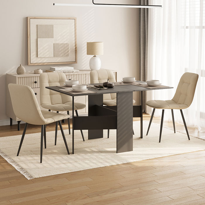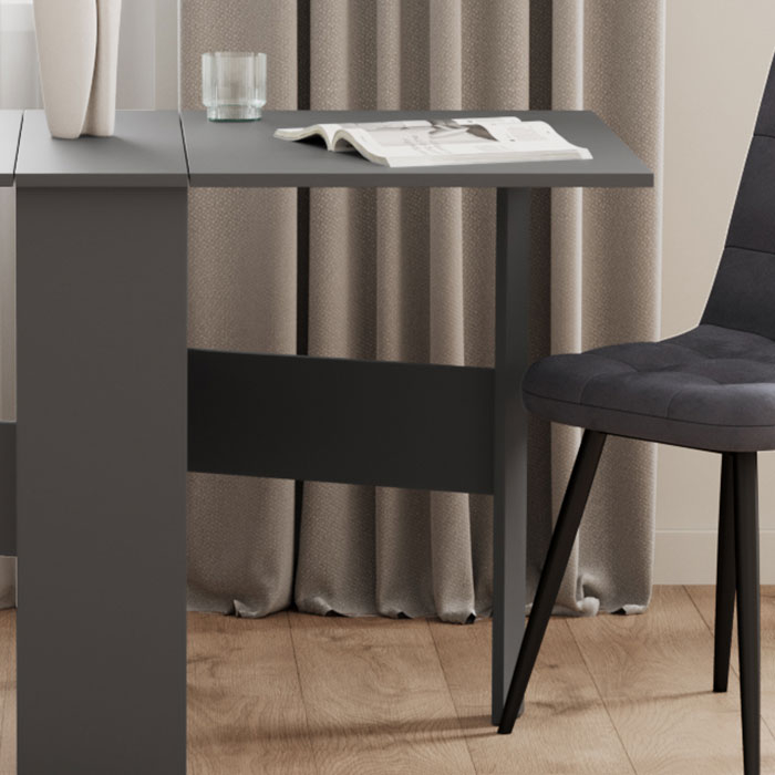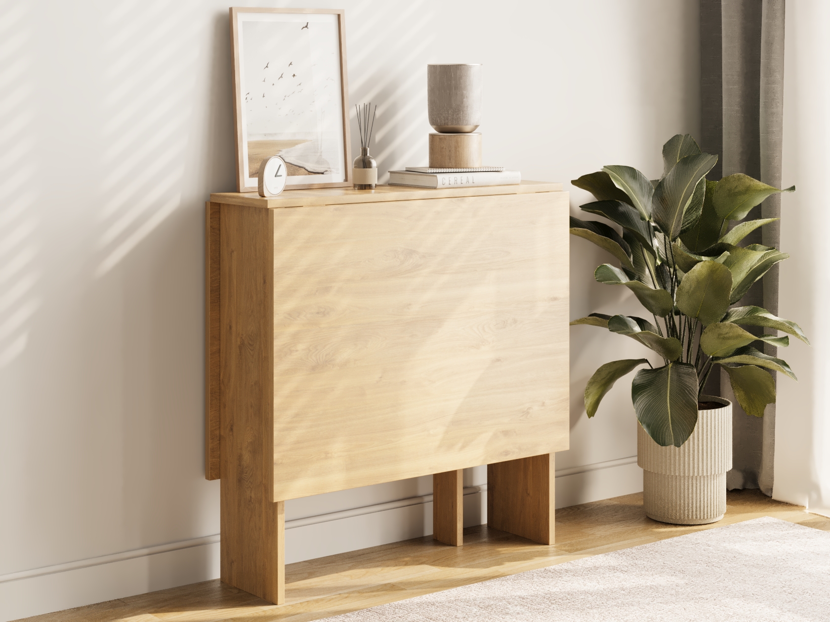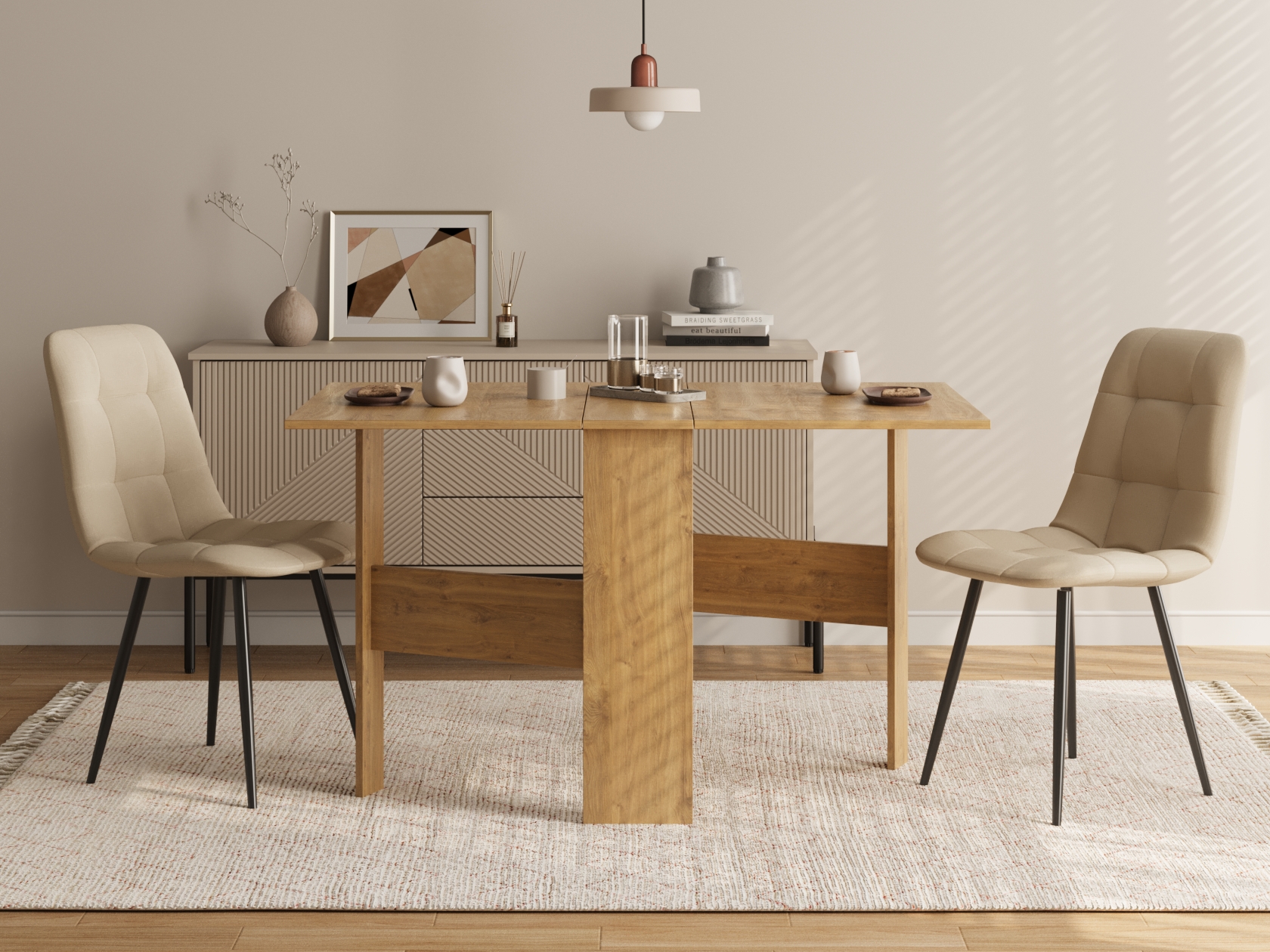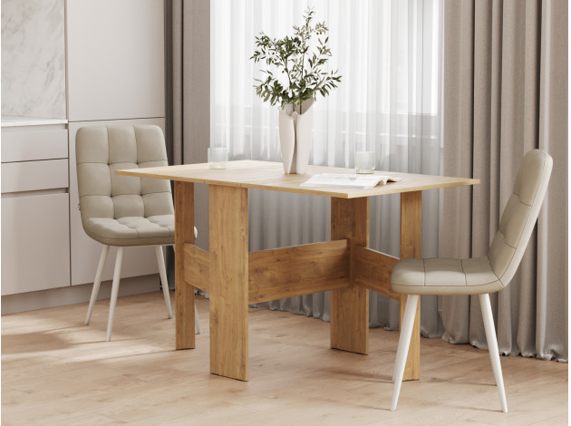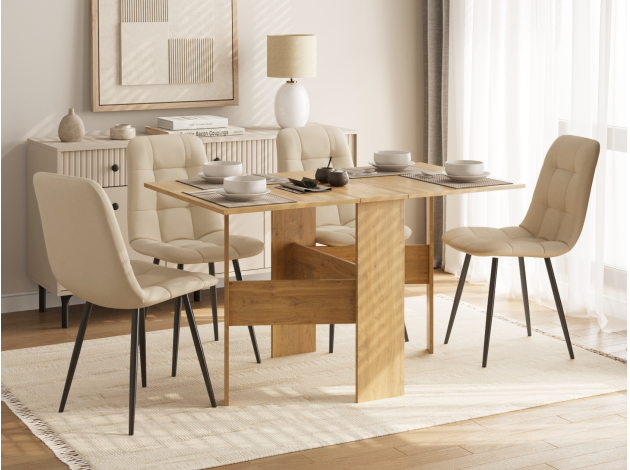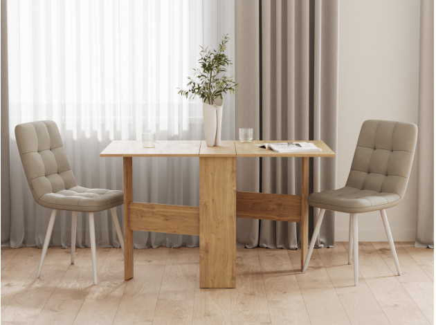 Стол-книжка Дебр станет отличным помощником для гостеприимных хозяев. Раскладная конструкция позволяет расположить несколько человек и быстро организовать домашнее застолье. В сложенном виде стол занимает мало места и может использоваться в качестве тумбы. Минималистичный дизайн хорошо адаптируется под разные стили интерьера.