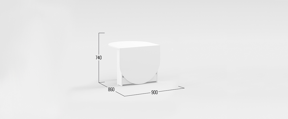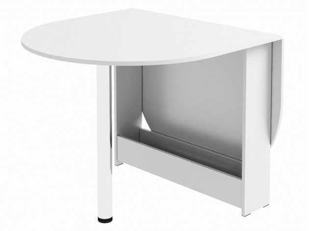 Чтобы разложить стол, нужно поднять крыло столешницы и прикрутить к нему ножку. В сложенном состоянии ножка хранится в специальной нише в основании стола.