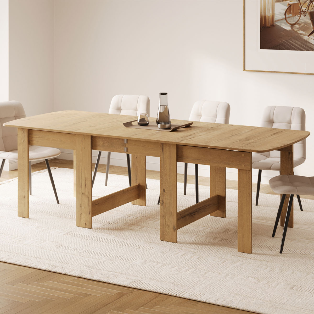 • Стол-книжка Тайга Макси отлично подойдет для современных гостиных и обеденных пространств. Модель быстро трансформируется из небольшой тумбы в удобный стол с просторной поверхностью, что позволяет разместить всех членов семьи или компанию друзей. При необходимости конструкцию можно разложить частично, создав зону для легкого перекуса.