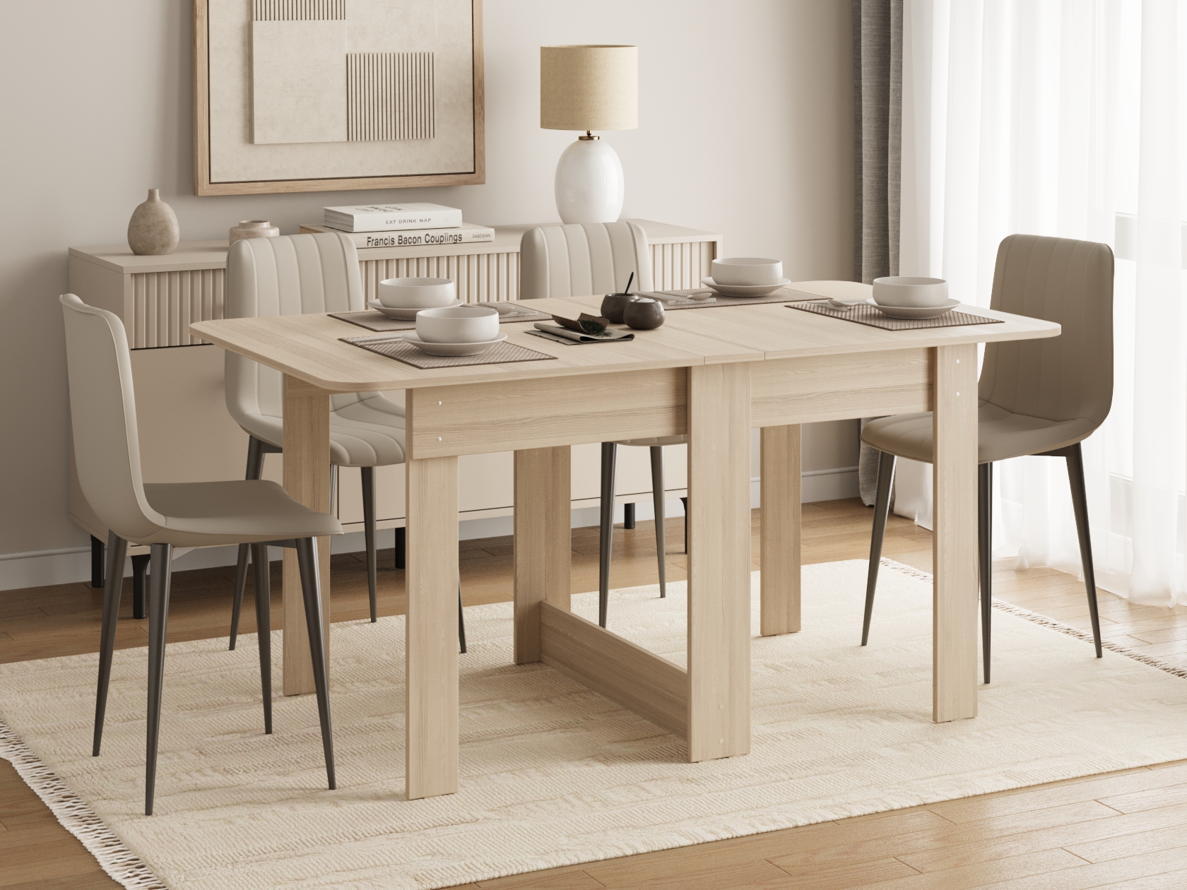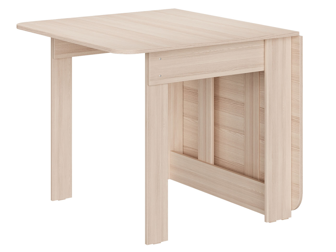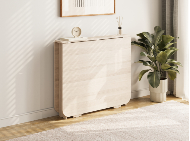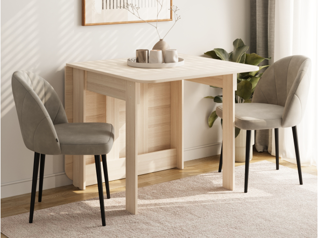 В сложенном виде модель занимает минимум пространства, при этом легко превращается в полноценный стол для небольшой компании.