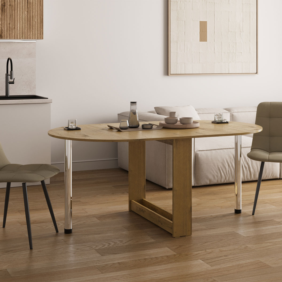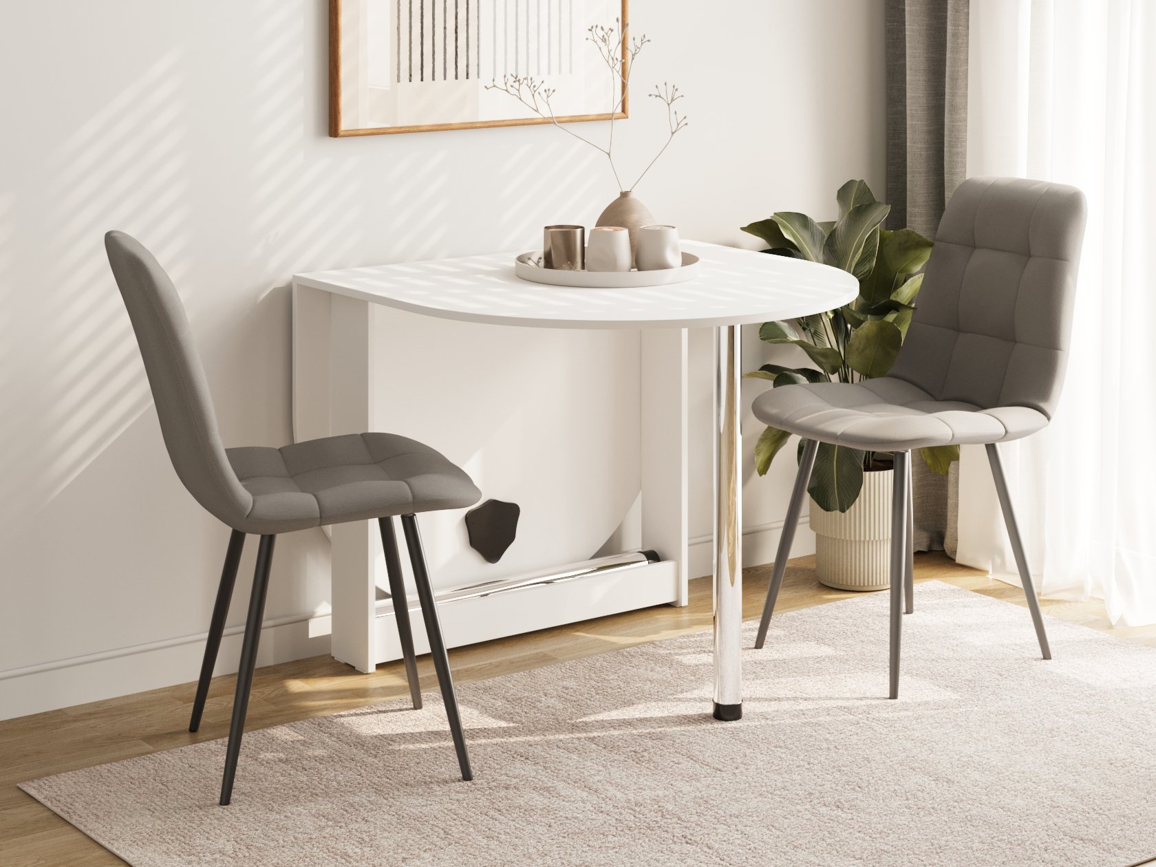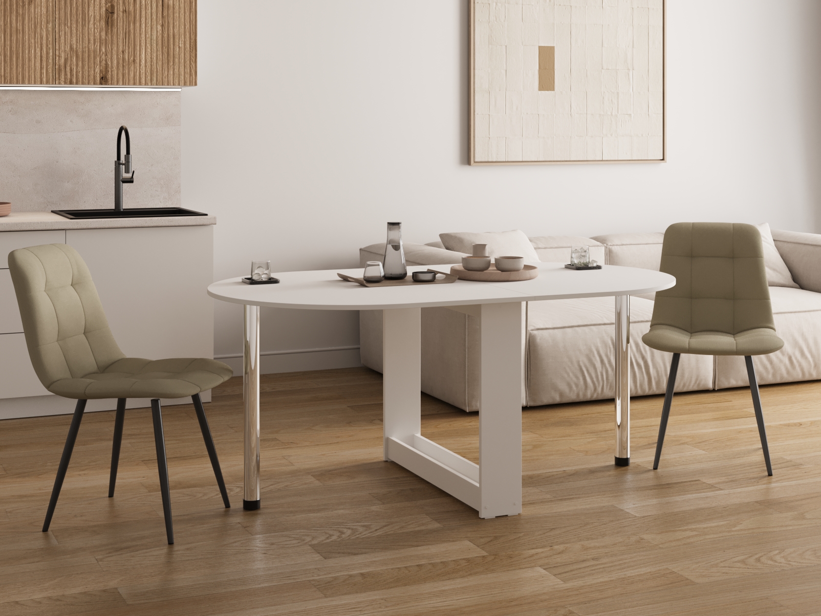 Стол-книжка Тайга-Мини позволит грамотно организовать пространство на небольшой кухне. В полностью разложенном виде модель образует просторную поверхность без острых углов, где легко поместится компания гостей, а в частично разложенном — стол можно вплотную придвинуть к стене, сэкономив пространство комнаты.