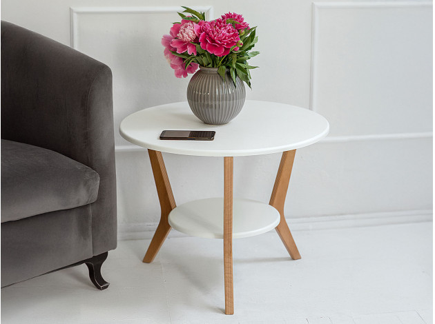 Журнальный столик Бьюти 13 станет украшением интерьера гостиной, кухни или спальни. Классическая круглая форма легко адаптируется под разные стили меблировки. Модель может послужить альтернативой кухонному столу либо выступить в роли рабочей поверхности для компьютера. Полка подходит для хранения различных мелочей. Ножки выполнены из массива дерева, что гарантирует долговечность конструкции.