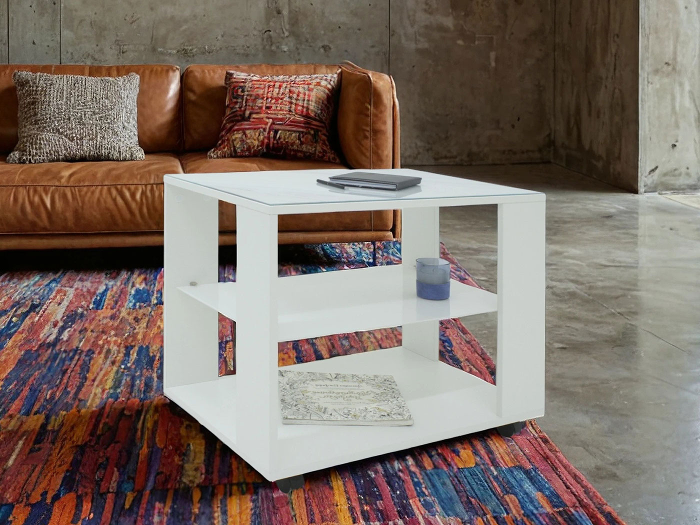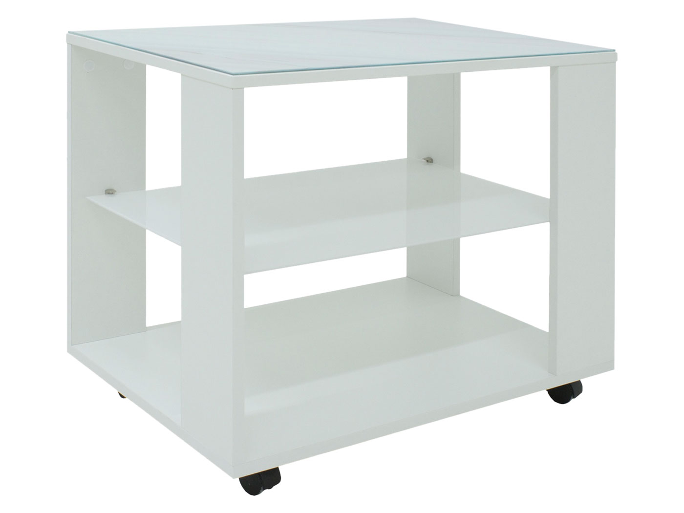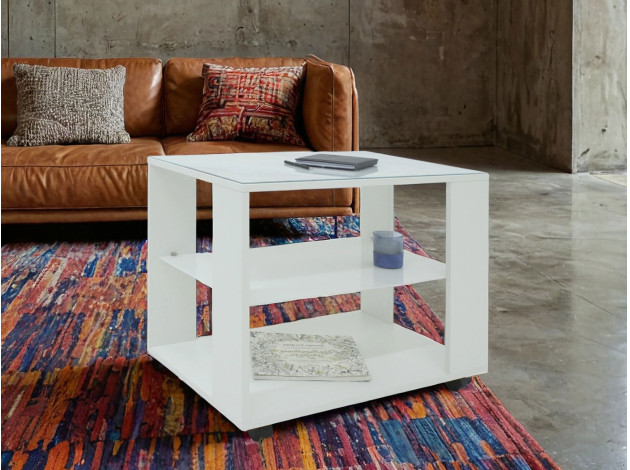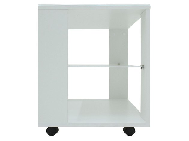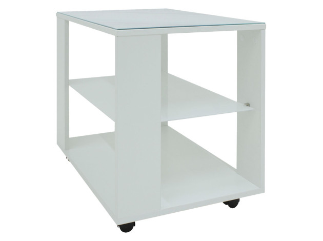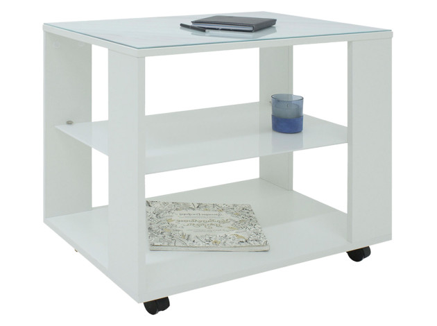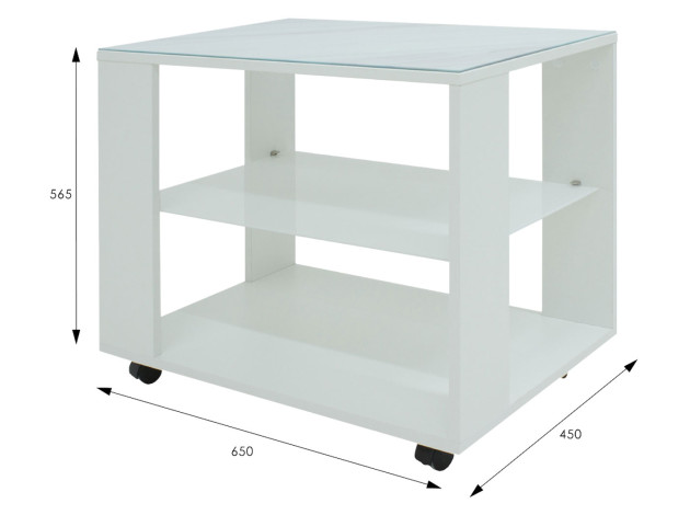 Современный журнальный столик Бьюти 5, выполненный в сочетании деревянных и стеклянных элементов, отлично дополнит интерьер гостиной или спальни. Модель имеет широкую столешницу и две полки для самых разных мелочей. В основании есть четыре колесика, которые позволяют легко перемещать столик по комнате.