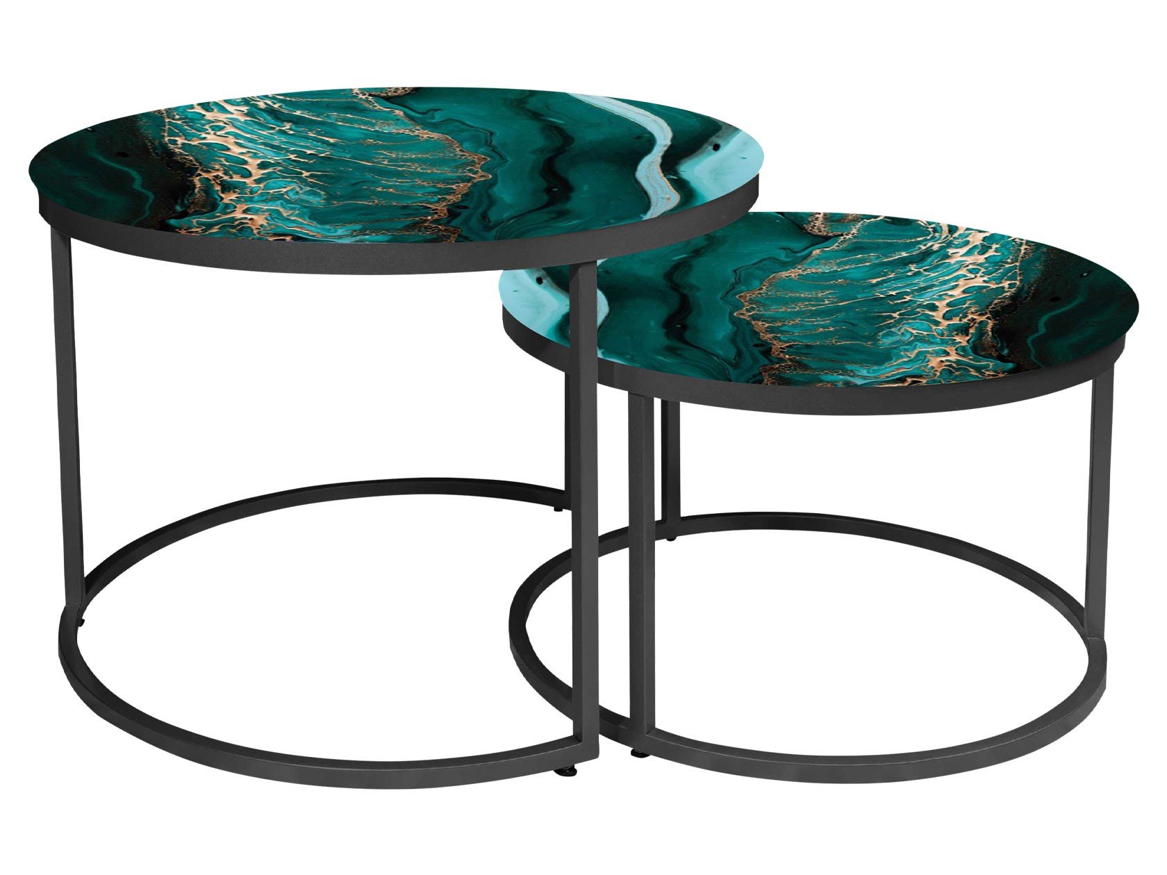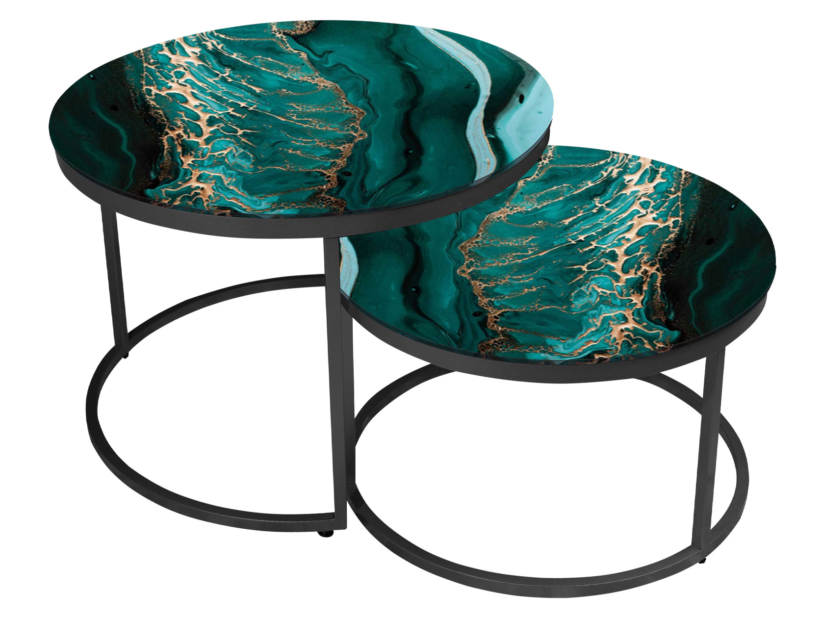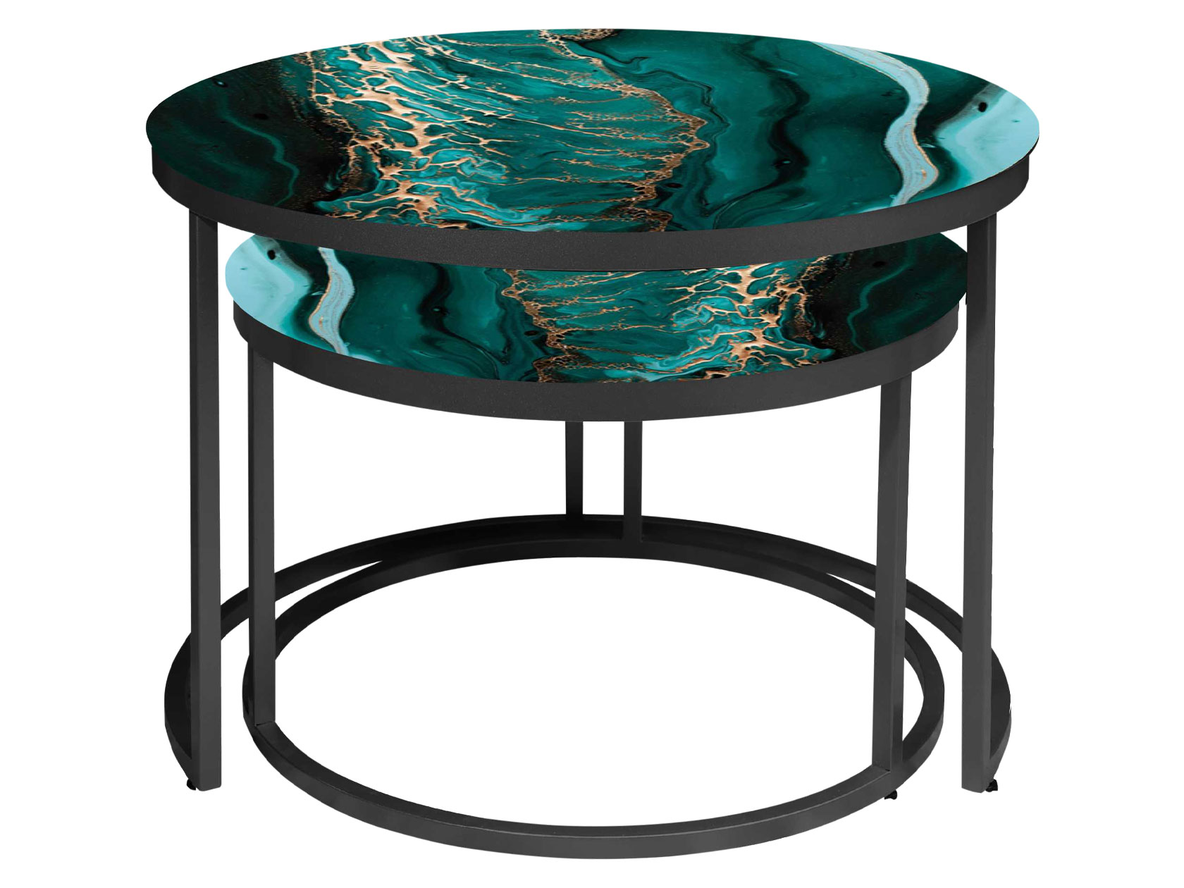 Набор журнальных столиков Лори Изумруд, МДФ / Черный матовый, металл