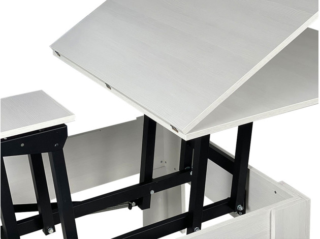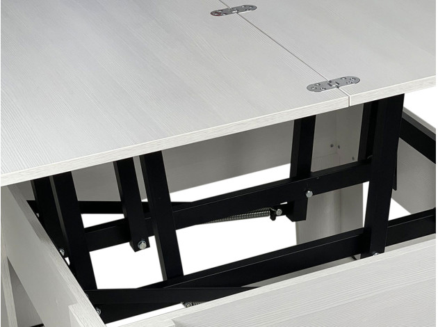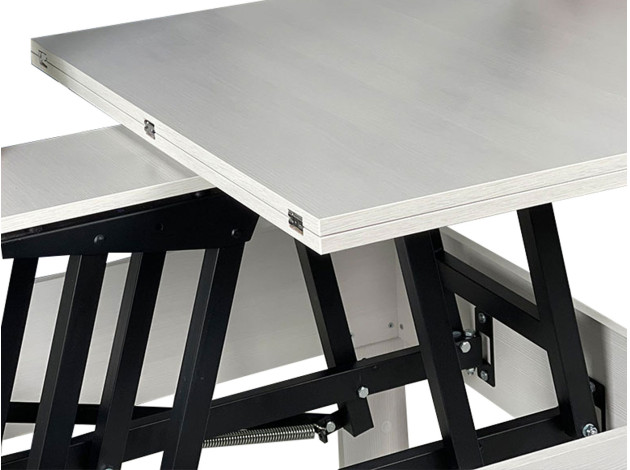 Чтобы разложить стол, необходимо потянуть на себя столешницу, когда она поднимется, нужно раскрыть ее.