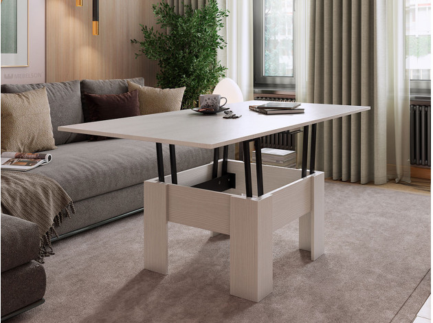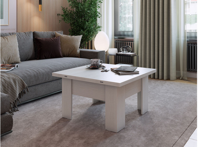 Стильный журнальный столик Секрет станет изюминкой любого интерьера. На столешницу нанесен изящный рисунок, а благодаря надежным ножкам модель очень устойчива. Благодаря специальному механизму внутри корпуса столик легко трансформируется в полноценный обеденный стол, за которым смогут комфортно разместиться до шести человек.