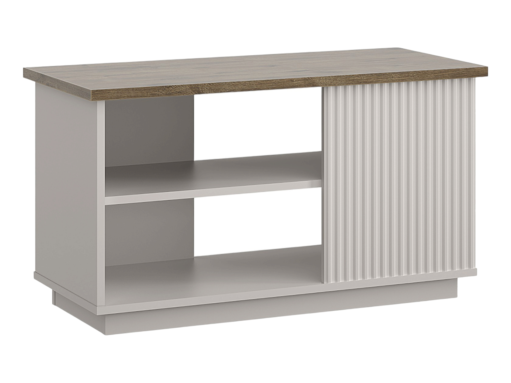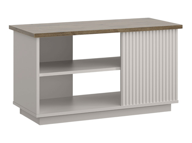 Журнальный столик Винати в оригинальном современном дизайне станет стильным дополнением гостиной. Модель отлично подходит для подачи напитков и закусок к приходу гостей, а также помогает держать в легком доступе пульт или смартфон. Небольшая полка под столешницей подходит для книг и журналов. Декоративная фрезеровка добавляет мебели актуальный акцент.
