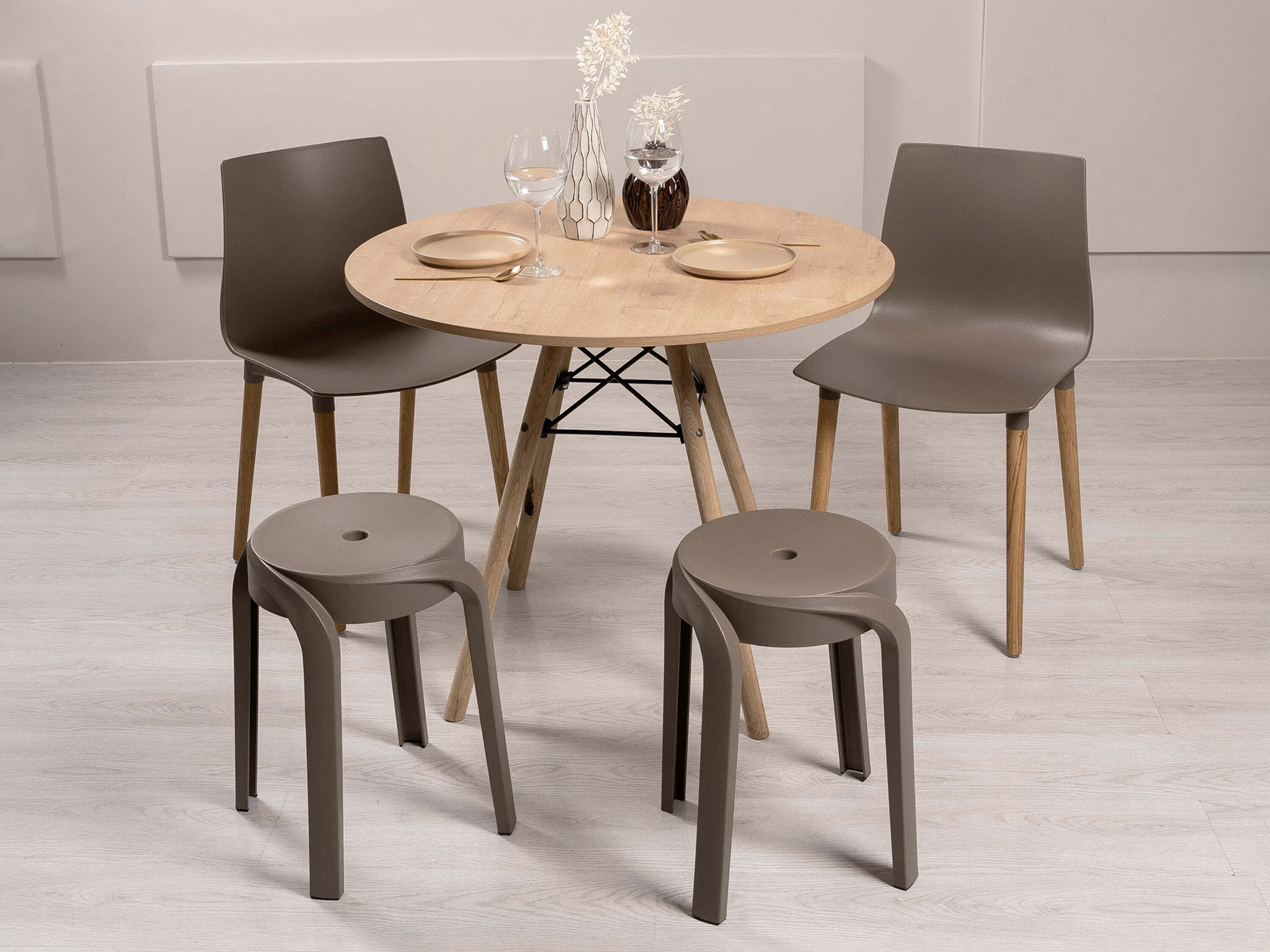 Табурет Эклер — практичный вариант для меблировки обеденной зоны в малогабаритном помещении. Модель легко перемещать и задвигать под стол для экономии пространства. Специальные заглушки на ножках позволяют обезопасить напольное покрытие.