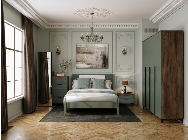 Обратите внимание, преимущество данной коллекции — крашеные МДФ-фасады, покрытые матовым лаком. Они отличаются прочностью, экологичностью и уникальным внешним видом благодаря глубокому проникновению краски в структуру плиты. Матовая текстура без «пальчикового» эффекта придает мебели особую эстетику, а также обеспечивает легкий уход и долговечность.