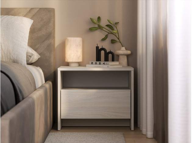Прикроватная тумба Дублин — небольшое, но очень удобное дополнение интерьера спальни. На тумбочке можно хранить телефон, зарядку, недочитанную книгу и другие важные мелочи. Комбинированное наполнение позволит часть предметов держать на виду, а другие — спрятать в выдвижном ящике.