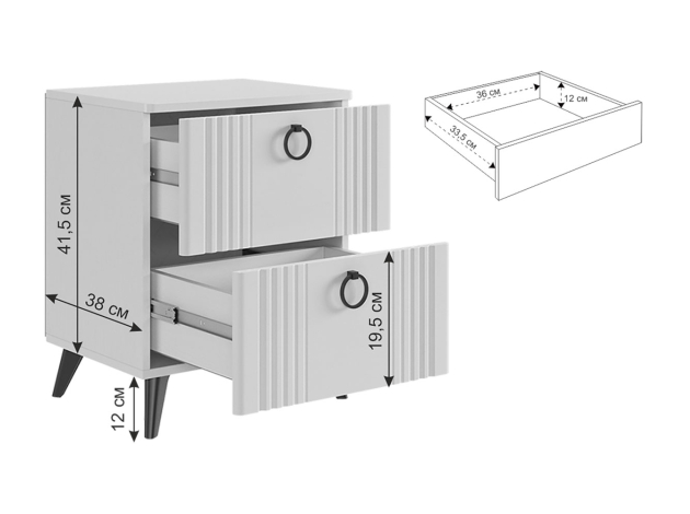 Прикроватная тумба Ева 2 ящика — стильный и функциональный элемент интерьера, который станет незаменимым помощником в комнате. Модель идеально подходит для хранения книг, журналов, телефона, будильника и других предметов, которые должны быть под рукой перед сном или после пробуждения. Благодаря компактным габаритам и удобному расположению тумба обеспечивает быстрый доступ к необходимым вещам и создает уютную атмосферу.