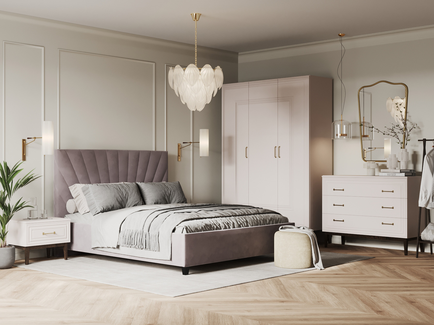 Обратите внимание, преимущество данной коллекции — крашеные МДФ-фасады, покрытые матовым лаком. Они отличаются прочностью, экологичностью и уникальным внешним видом благодаря глубокому проникновению краски в структуру плиты. Матовая текстура без «пальчикового» эффекта придает мебели особую эстетику, а также обеспечивает легкий уход и долговечность.