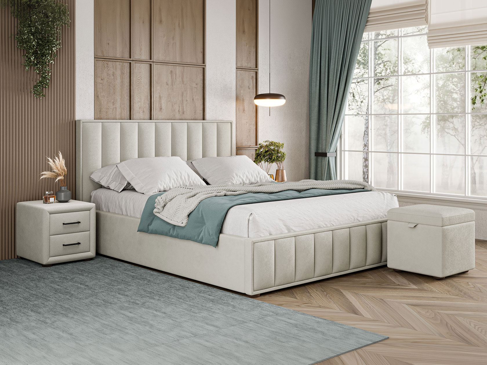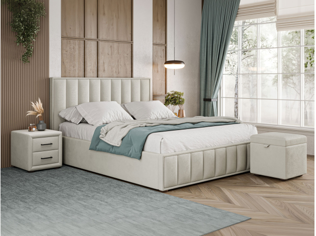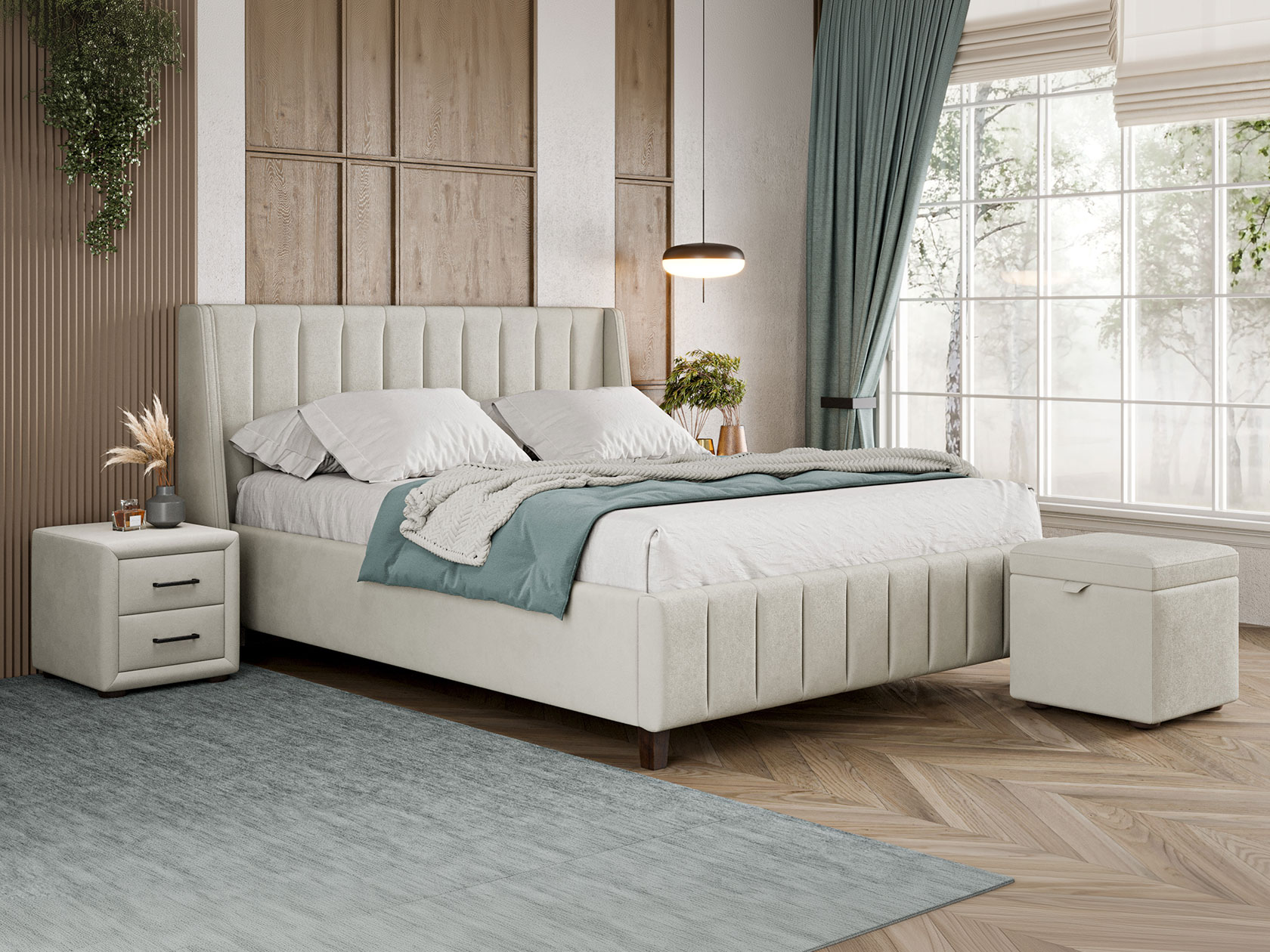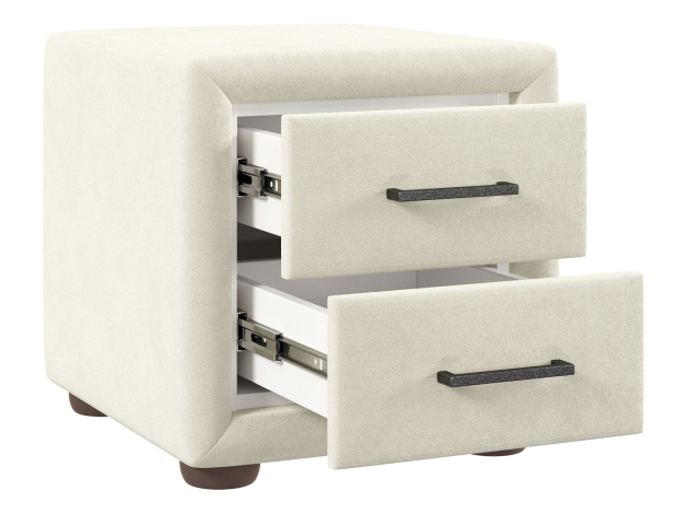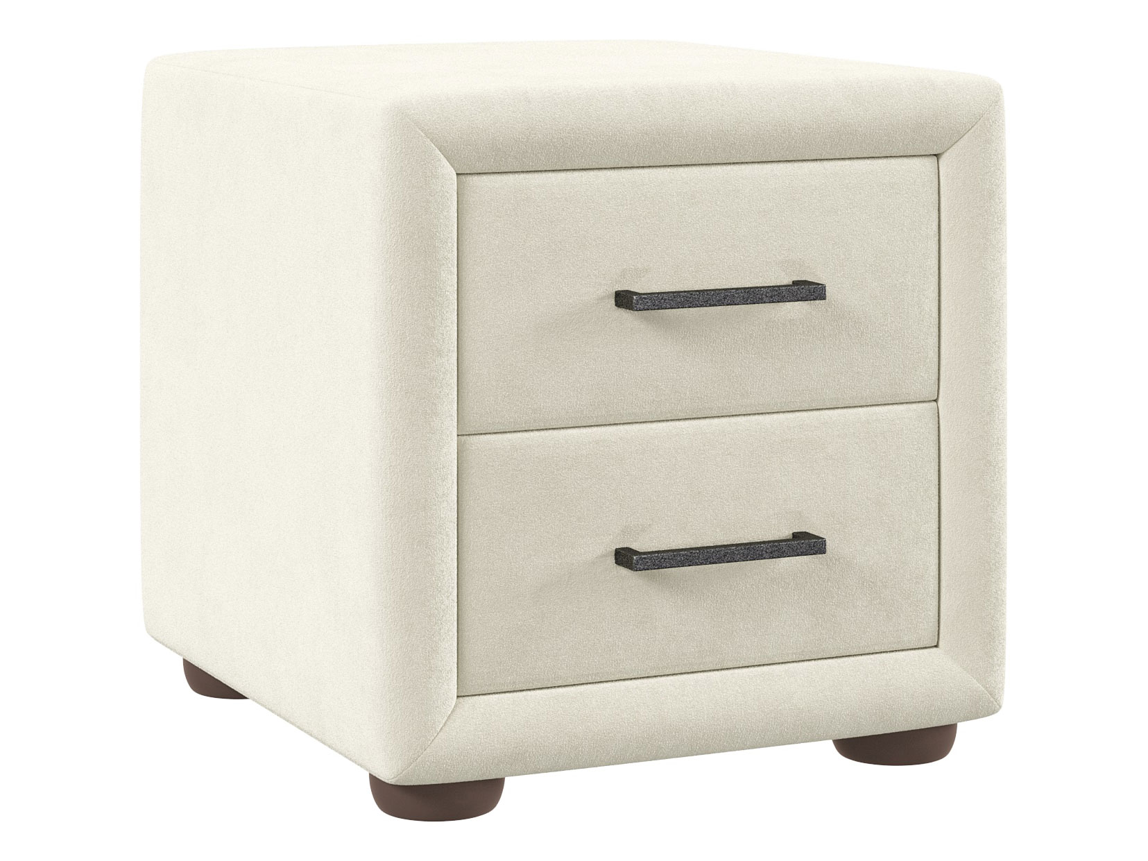 Прикроватная тумба Шерон наполнит спальню уютными акцентами. Корпус, полностью обитый мягкой тканью, создает плавный силуэт, а декоративная строчка по периметру фасадов придает модели строгость. Выдвижные ящики обеспечивают быстрый доступ к полезным мелочам: зарядке, футляру для очков, крему для рук. Небольшие опоры дарят тумбе устойчивость на полу с перепадами высоты.