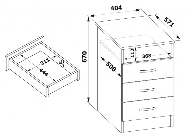 Тумба с ящиками Феррара служит для меблировки рабочей зоны. Она имеет открытую нишу и три выдвижных ящика для канцелярских принадлежностей. Внутренние размеры ящика (ВхШхГ): 8,1 х 31,1 х 44,4 см.