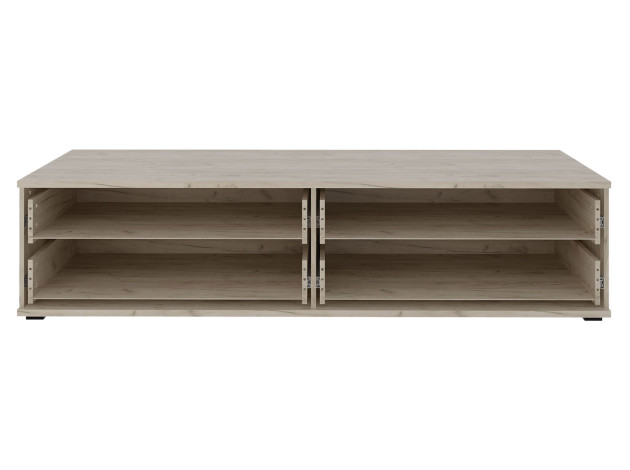 ТВ-тумба Альянс — вместительная и функциональная модель, с которой легко организовать порядок в вещах. Широкие выдвижные ящики позволяют быстро найти нужный предмет, а поверхность служит для размещения декора и сопутствующей техники. В оформлении используются светлые натуральные оттенки и лаконичная фурнитура.