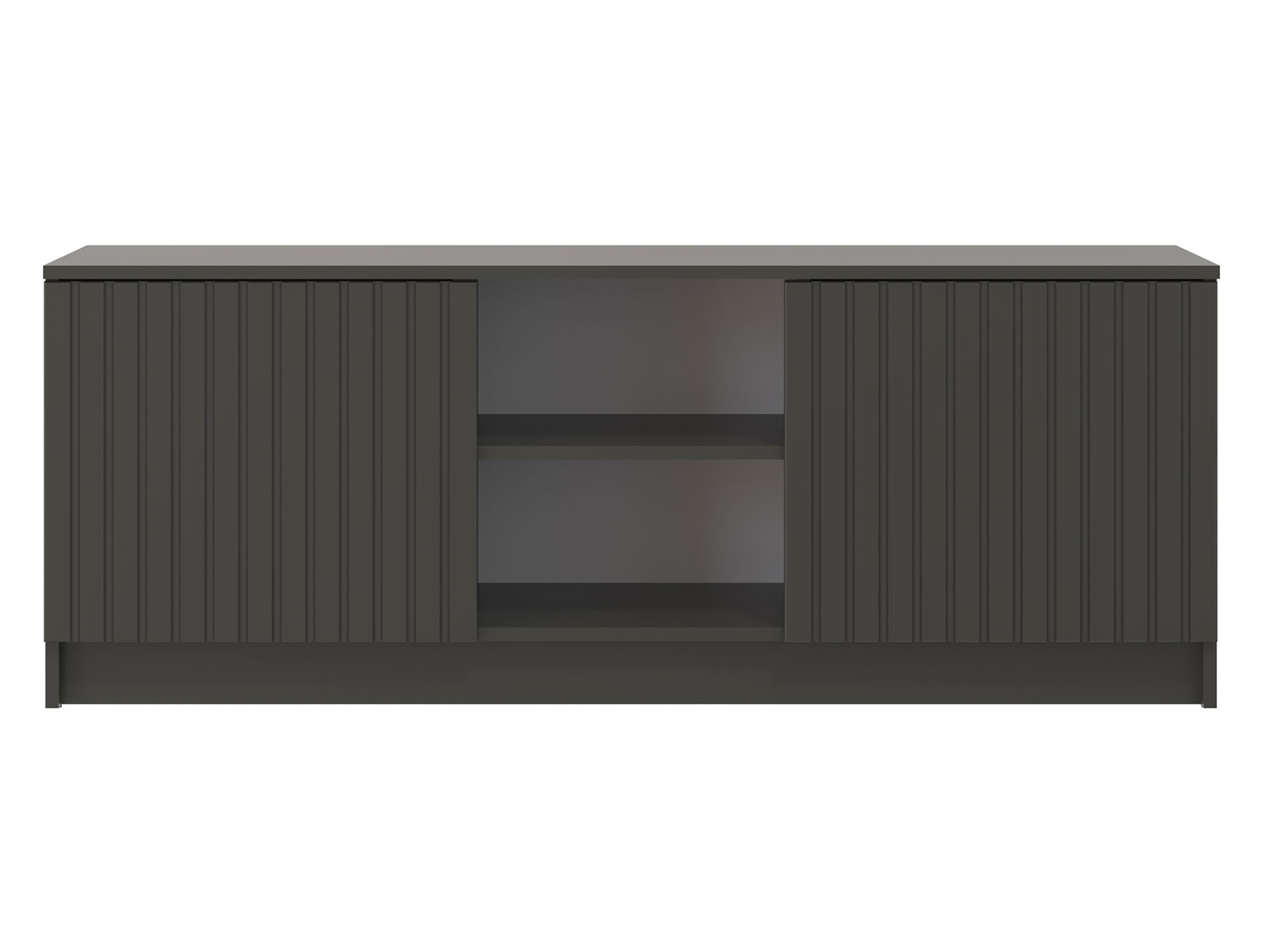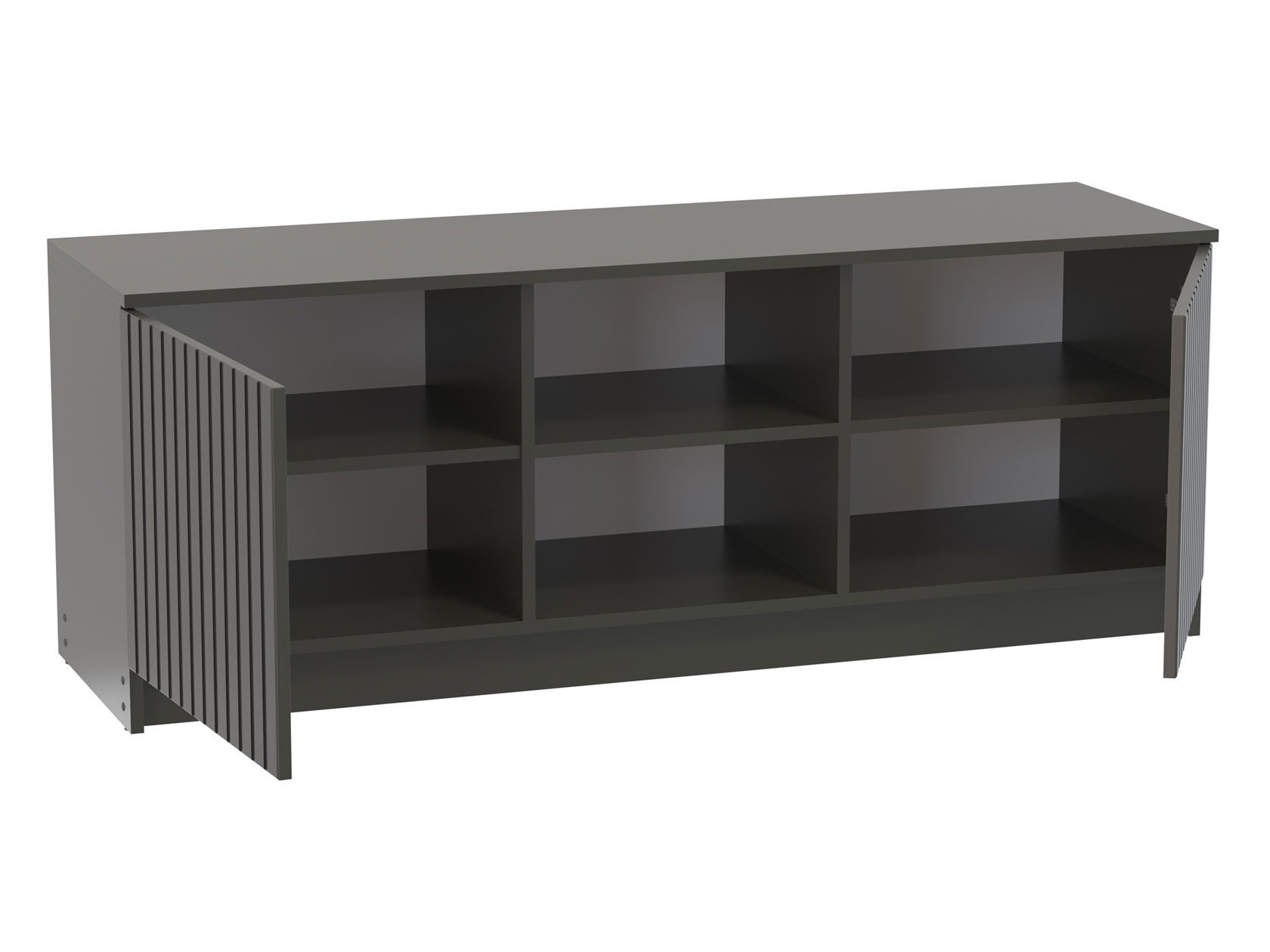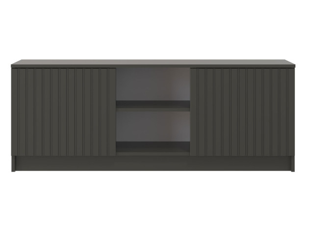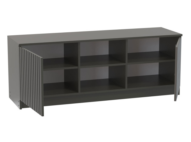 ТВ-тумба Брандо подойдет для размещения монитора с большой диагональю и других мультимедийных устройств. Отделения с распашными дверцами и открытые полки по центру помогут поддерживать порядок в комнате. Вертикальная фрезеровка служит стильным декором и добавляет пространству уютный акцент.