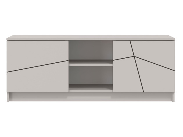 ТВ-тумба Брандо Узор дополнит интерьер гостиной, позволив разместить не только широкоформатный телевизор, но и сопутствующие аксессуары. На открытых полках удобно хранить технику, а за дверцами — спрятать разные мелочи и предметы обихода. Узор на фасадах в виде геометрических линий превращает мебель в акцентный элемент интерьера.
