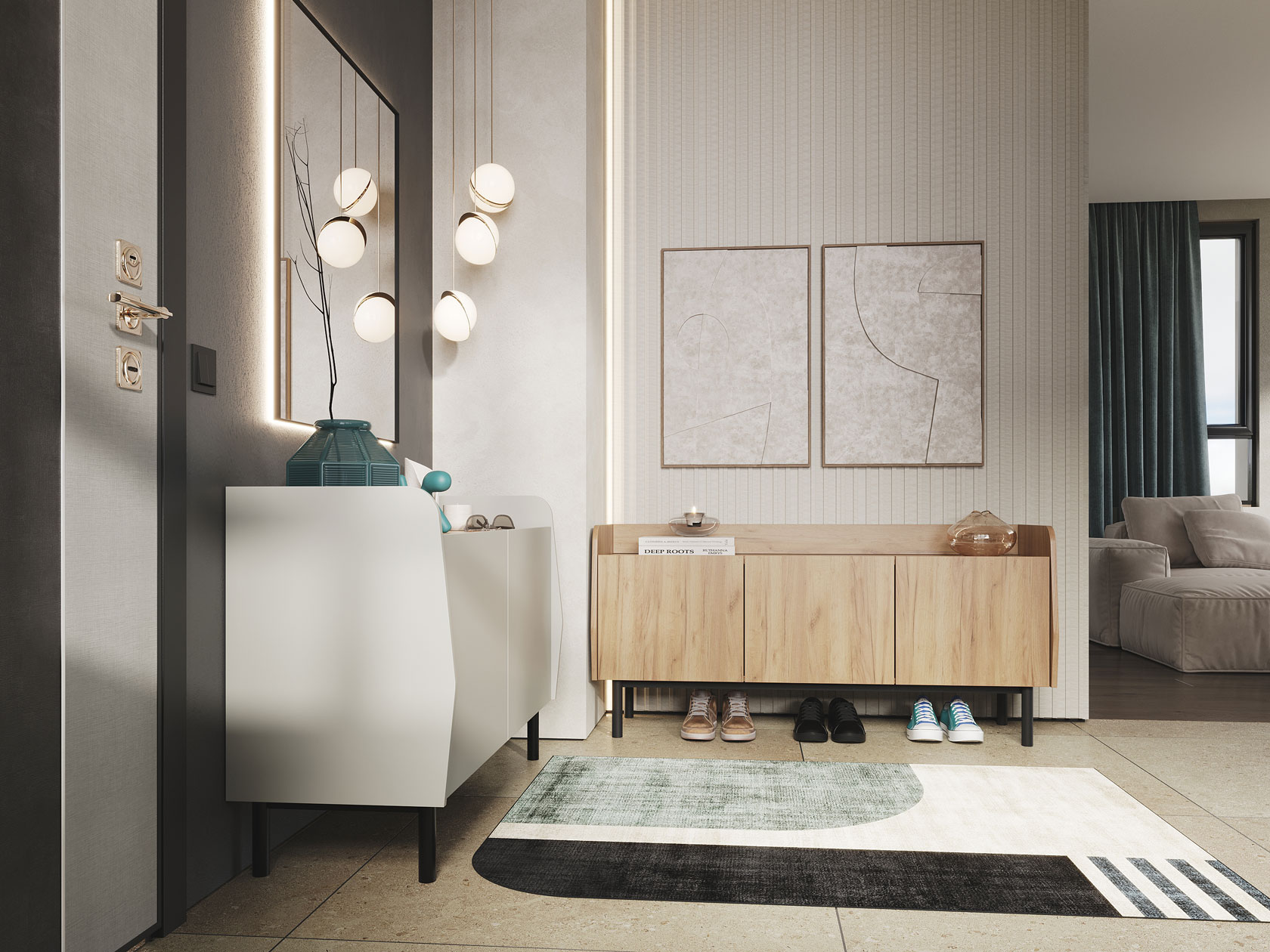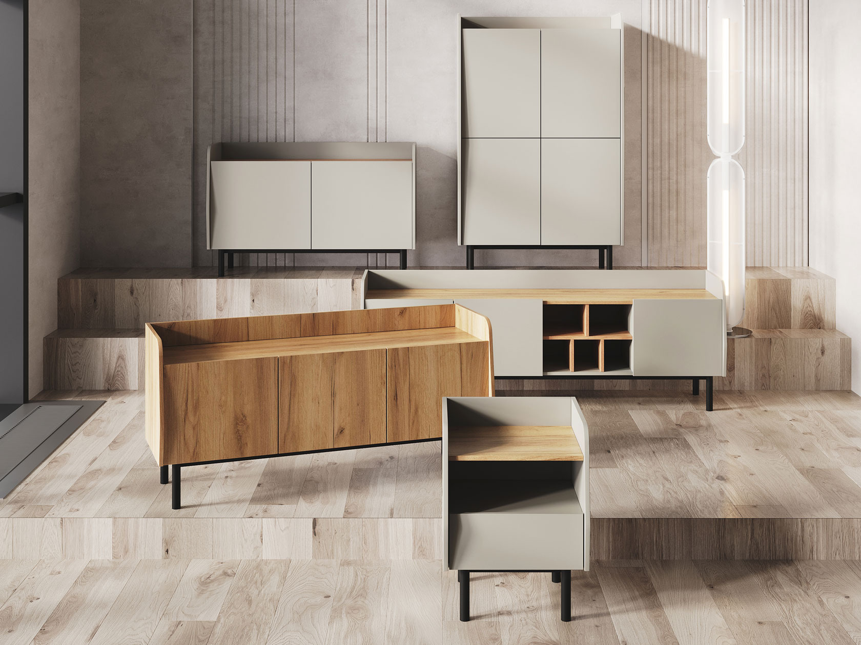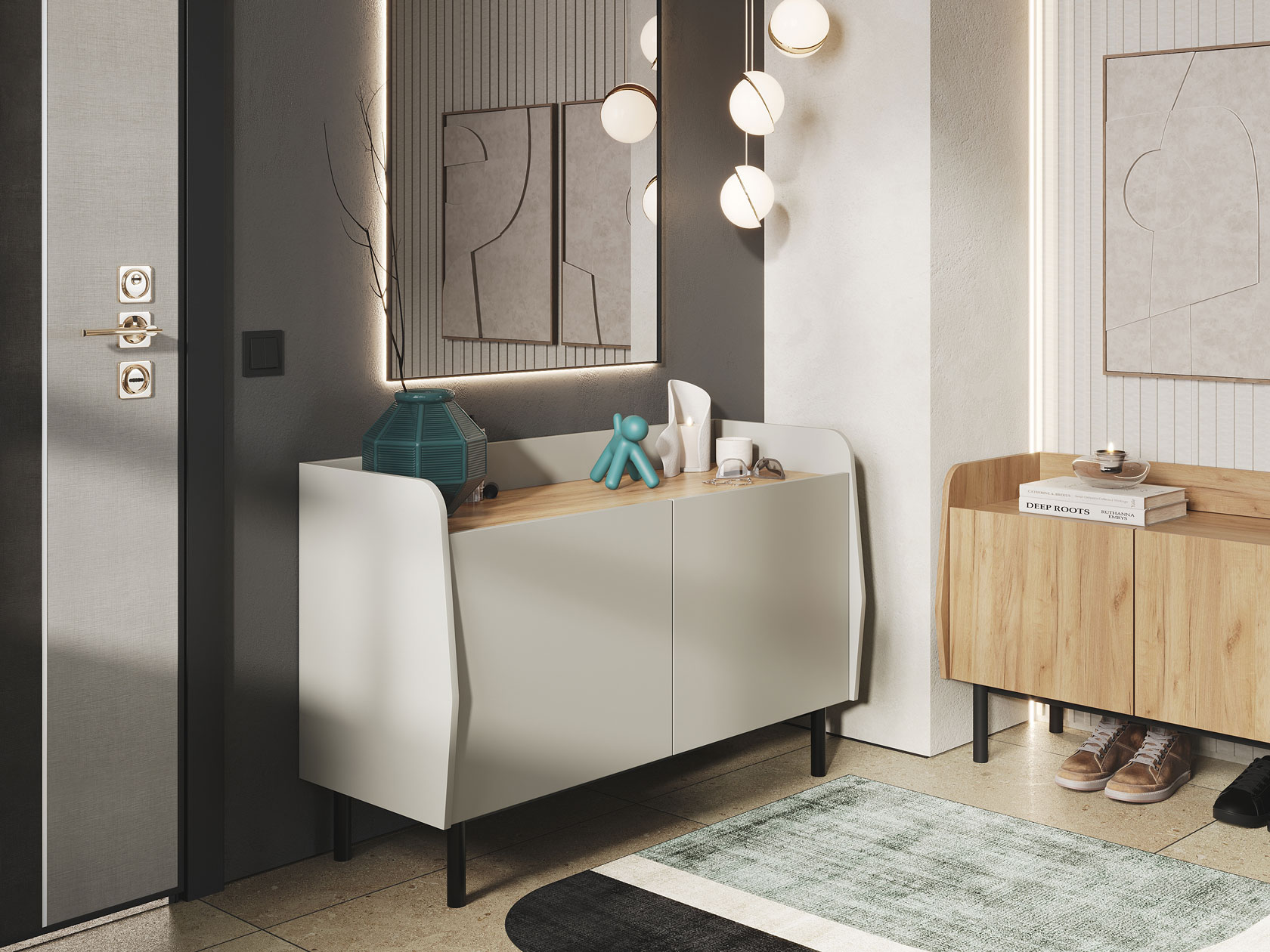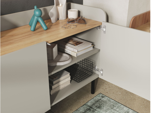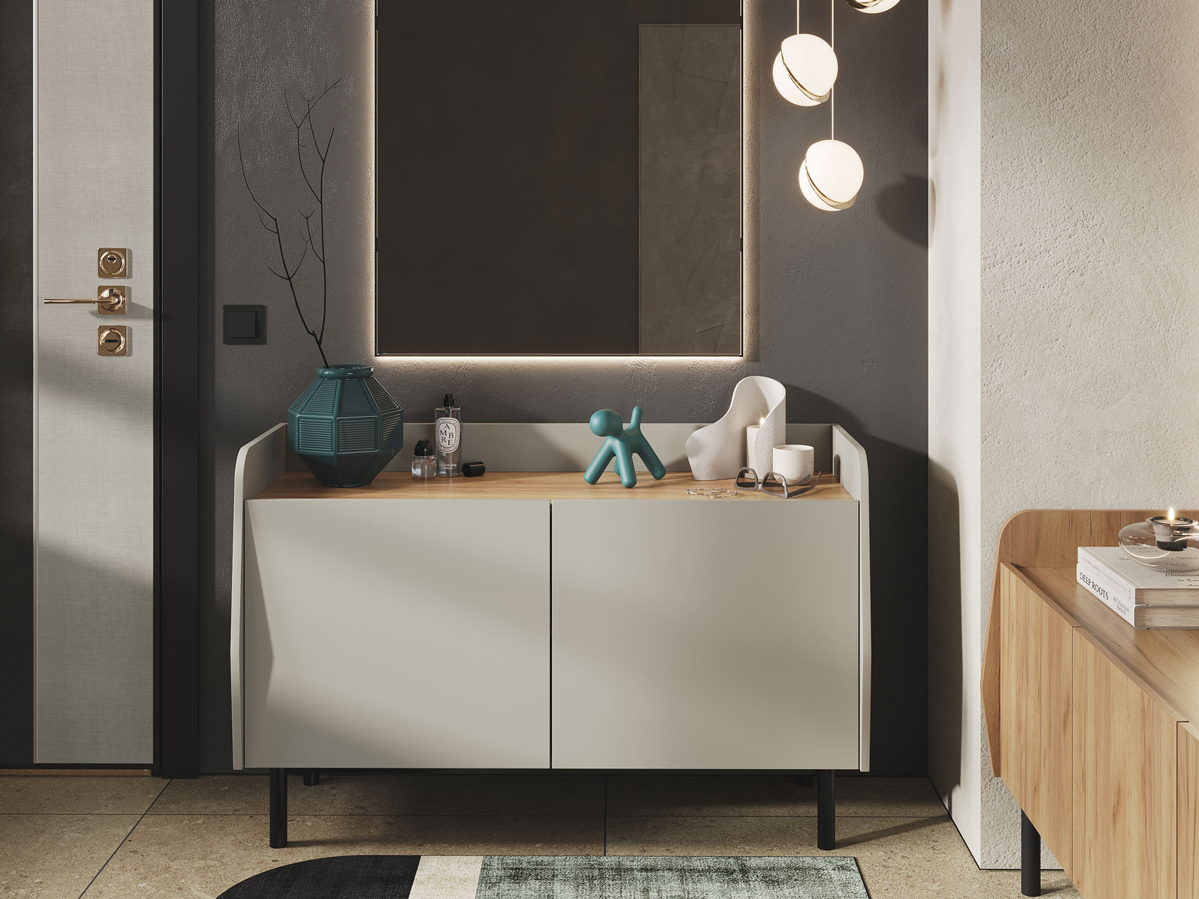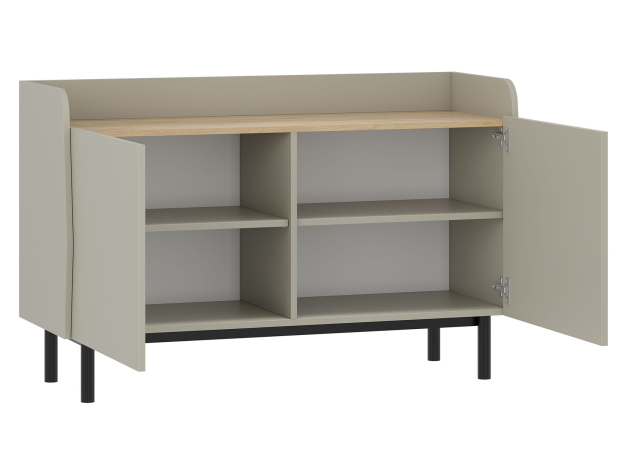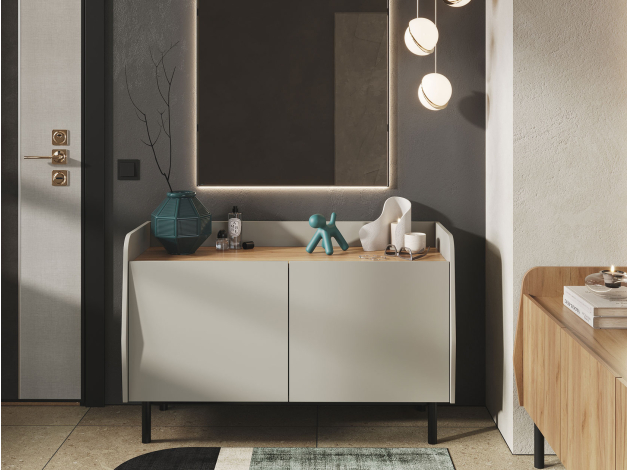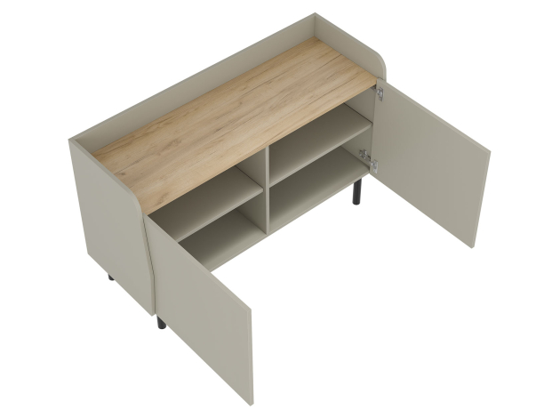 ТВ-тумба Бруно — идеальное решение для организации порядка в любой комнате. За распашными дверцами можно хранить текстиль, книги и аксессуары. Поверхность с бортиками станет отличным местом для небольшого светильника и предметов декора. Матовые фасады без ручек создают минимализм в интерьере, а высокие ножки придают мебели визуальную легкость.