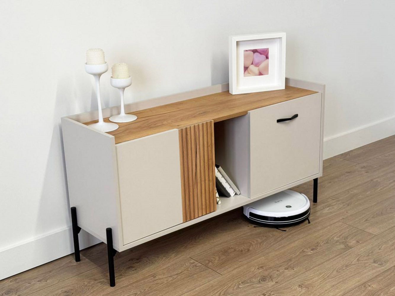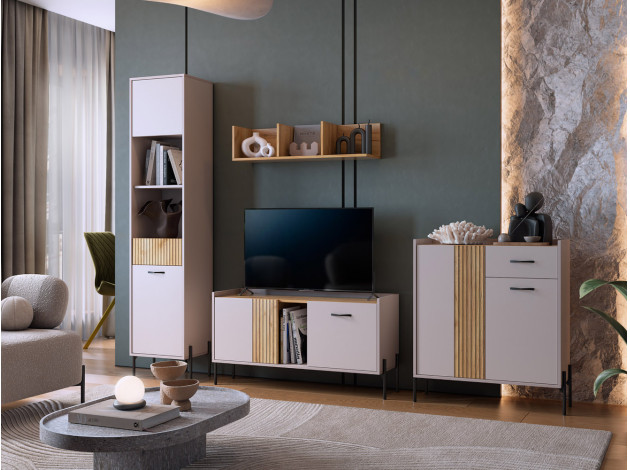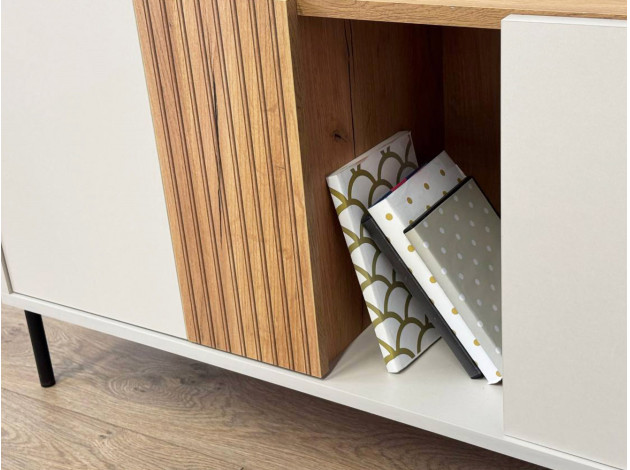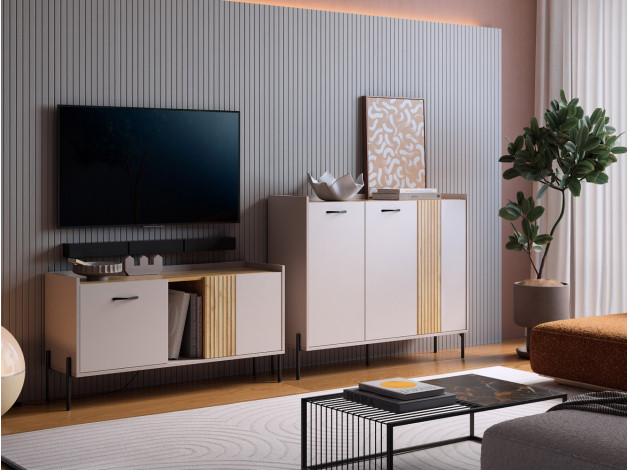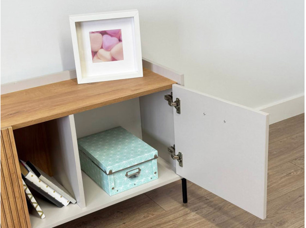 ТВ-тумба Доминика добавит стильный акцент в оформление интерьера. Матовые фасады и высокие ножки создают современный и визуально приятный облик модели. Внутреннее наполнение позволяет аккуратно хранить все необходимые вещи. На поверхности можно установить широкоформатный телевизор.