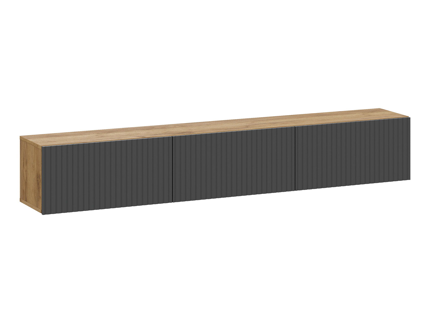 Навесная ТВ-тумба Кайло добавит функциональности и визуальной легкости там, где важно грамотно использовать пространство. Откидная дверца фиксируется в открытом положении, организуя быстрый доступ к содержимому. Конструкция поделена на три секции, которые подходят для хранения различных мелочей. Матовые фасады с вертикальной фрезеровкой дополняют современный интерьер и не требуют сложного ухода.
