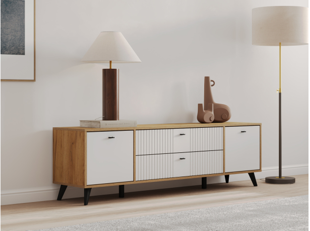 ТВ-тумба Милан с ящиками Дуб золотой / Белый матовый