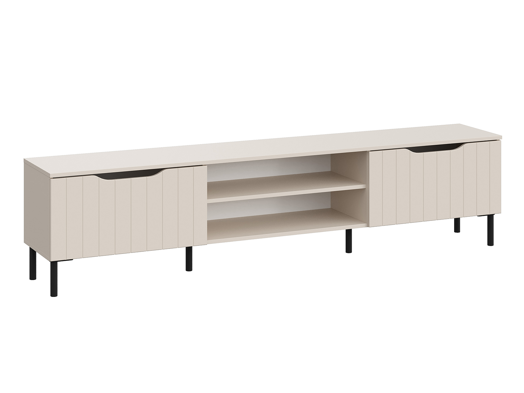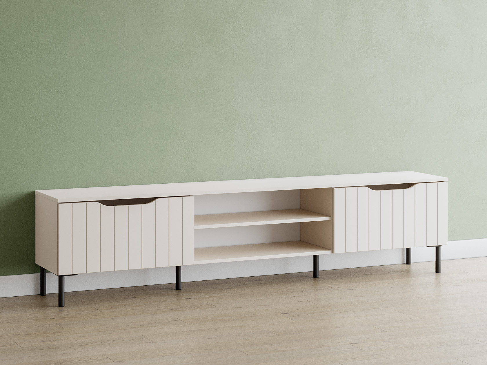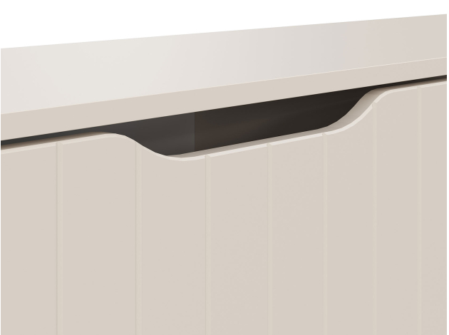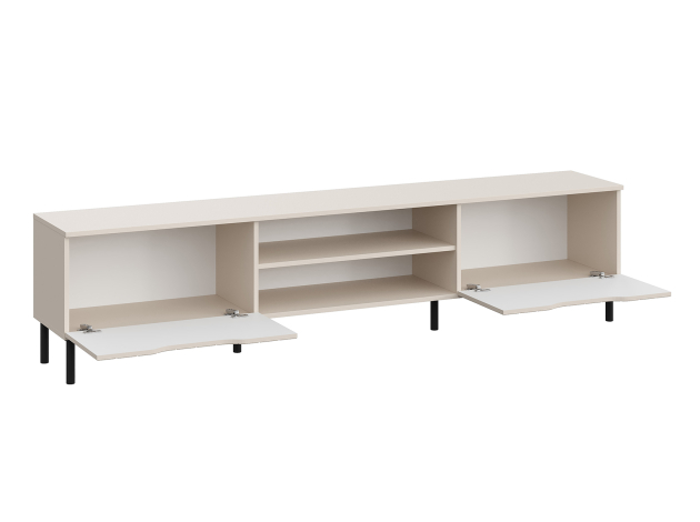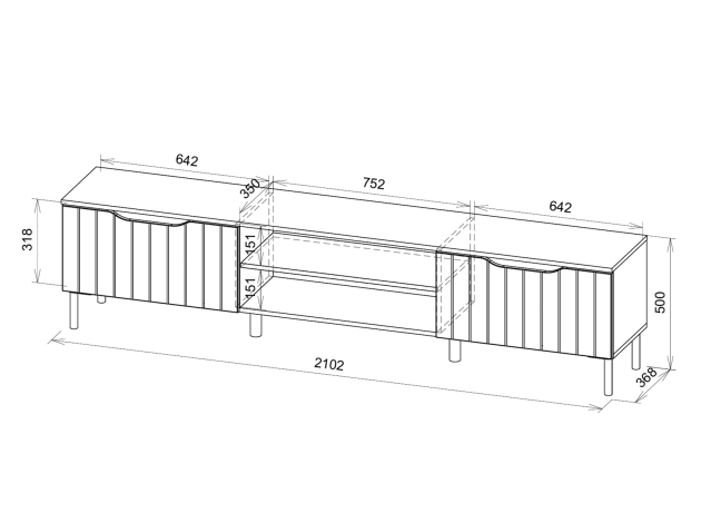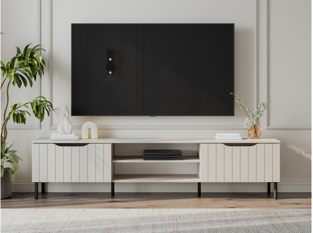 ТВ-тумба Памир Макси — функциональная модель с оригинальным дизайном. Вырезы вместо выступающей фурнитуры и вертикальный декор превращают мебель в акцентный элемент интерьера. На открытых полках удобно хранить сопутствующую технику и аксессуары, а за откидными дверцами — спрятать разные мелочи и предметы обихода. Тумбу можно подвесить на стену или установить на металлические опоры.