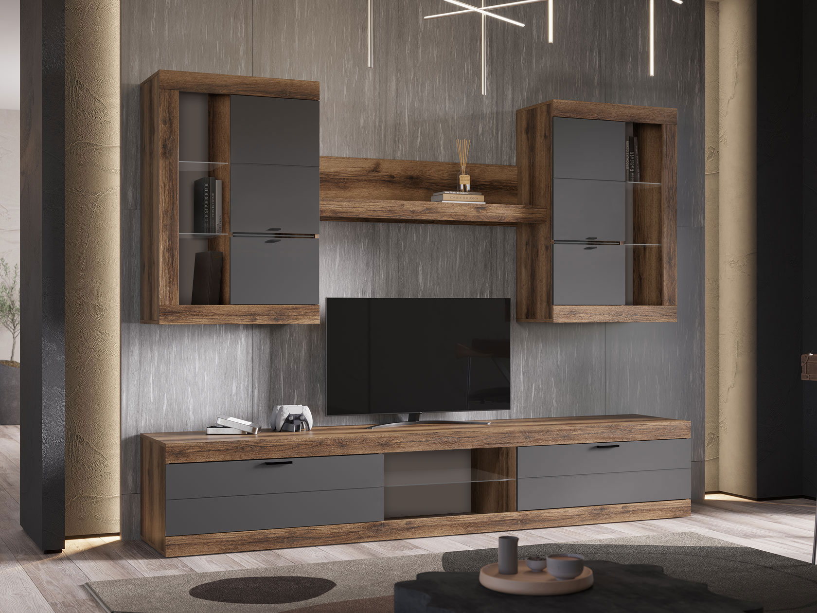 ТВ-тумба Прага Дуб Делано / Графит Софт Без подсветки