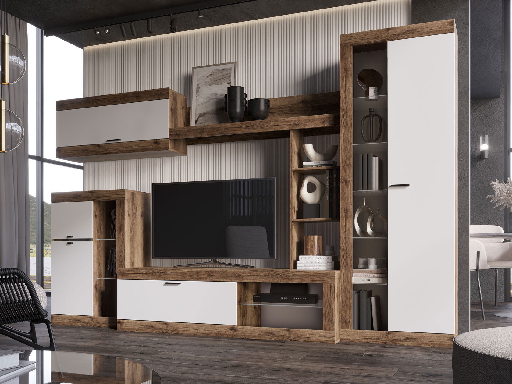 ТВ-тумба Прага Мини отлично подходит для установки телевизора и размещения сопутствующей аппаратуры. Открытая полка украсит интерьер и позволит держать на виду полезные мелочи. За глухим фасадом удобно хранить личные вещи и предметы обихода. Сочетание разных оттенков и текстур создает уютное настроение.