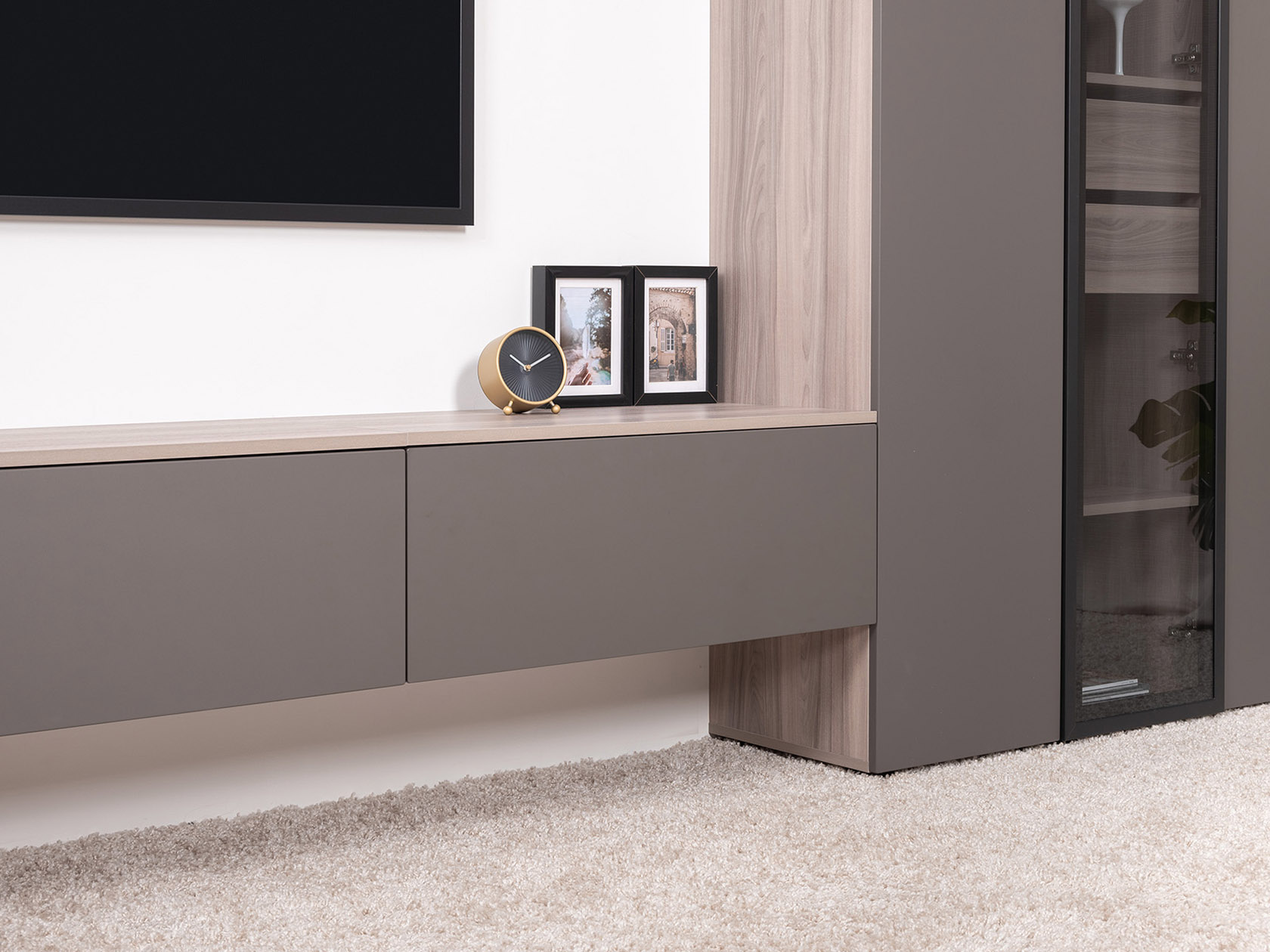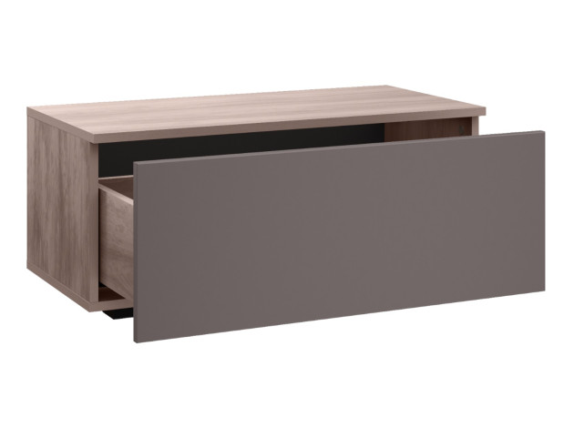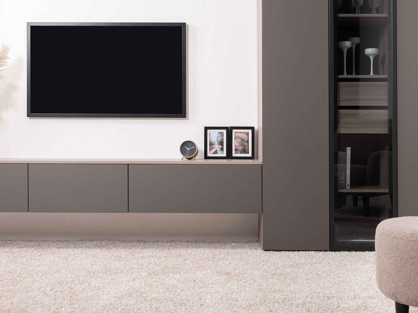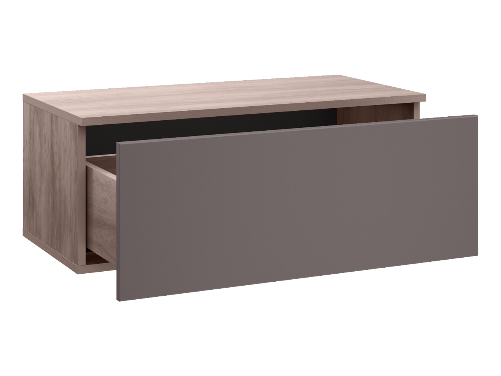 ТВ-тумба Роквуд Мини — компактная модель, которая разместит небольшой монитор, приставку или декор. На гладком матовом фасаде отсутствует лицевая фурнитура, что подчеркивает лаконичный дизайн мебели. Выдвижной ящик с плавным ходом открывается легким нажатием. Тумбу можно установить на полу или подвесить к стене.