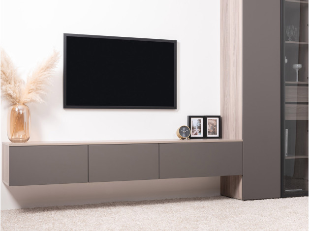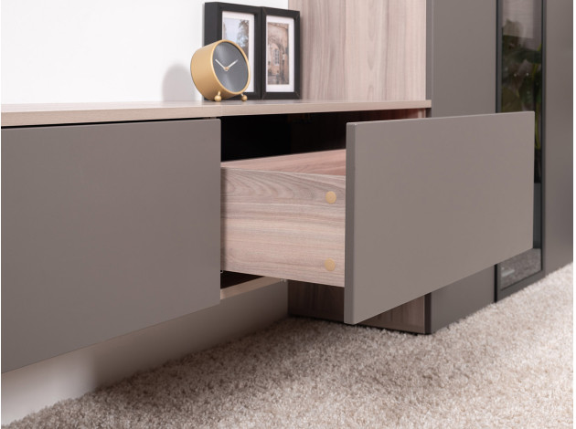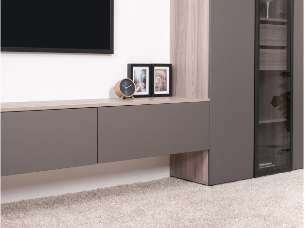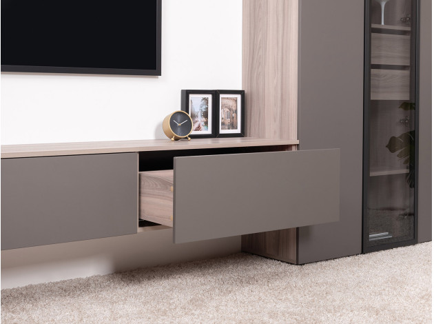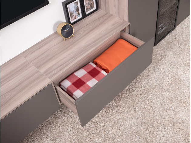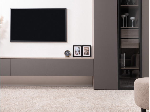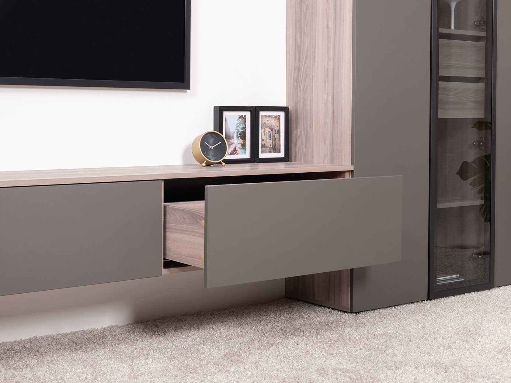 ТВ-тумба Роквуд Мини — компактная модель, которая разместит небольшой монитор, приставку или декор. На гладком матовом фасаде отсутствует лицевая фурнитура, что подчеркивает лаконичный дизайн мебели. Выдвижной ящик с плавным ходом открывается легким нажатием. Тумбу можно установить на полу или подвесить к стене.