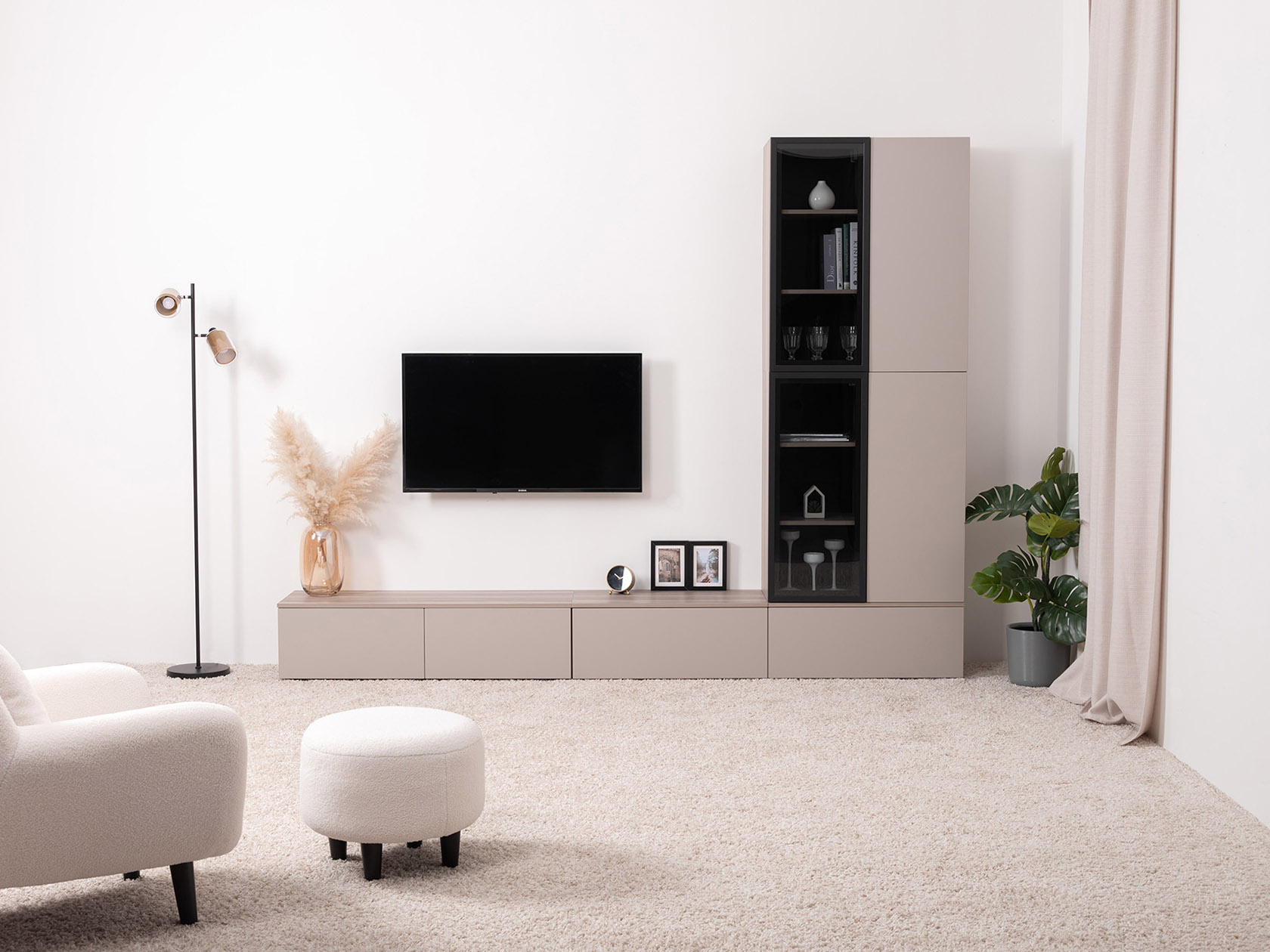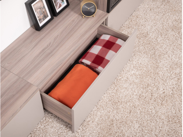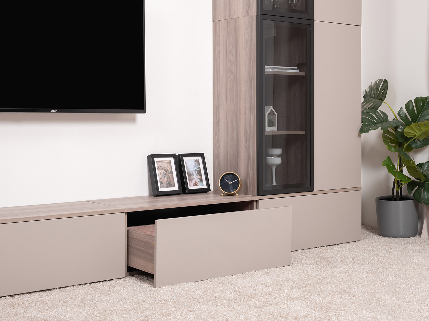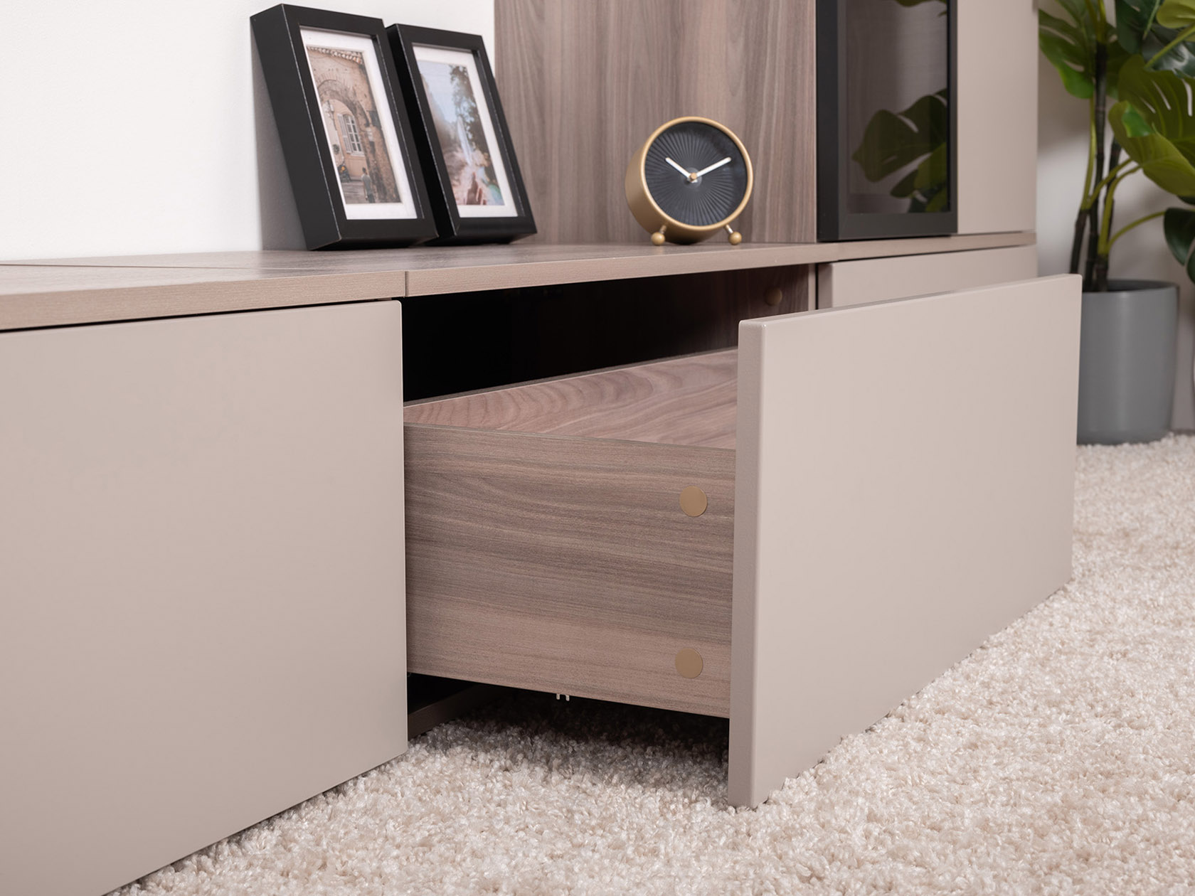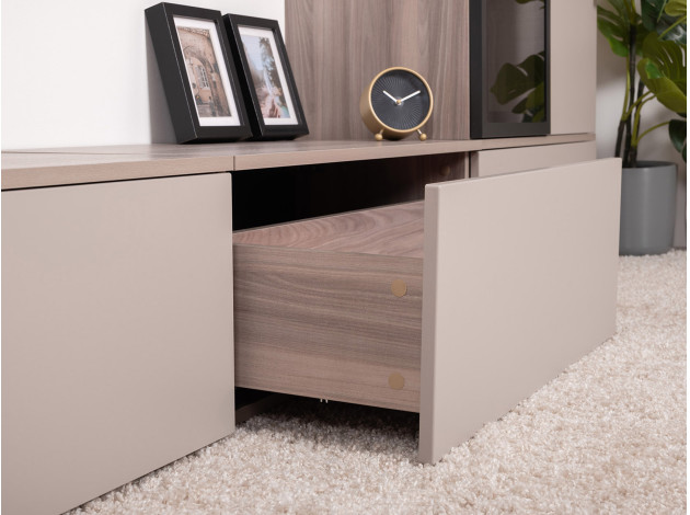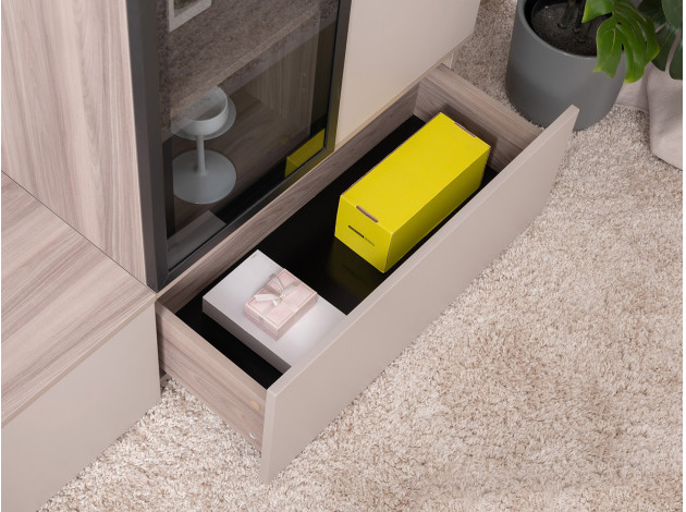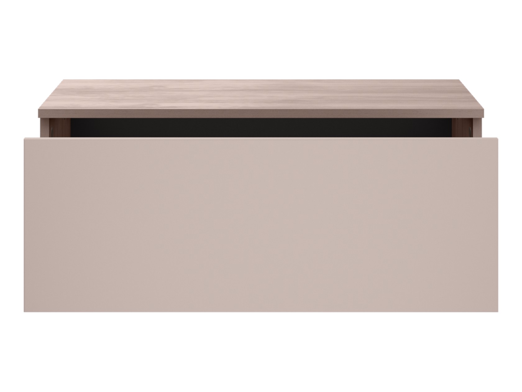 ТВ-тумба Роквуд Мини — компактная модель, которая разместит небольшой монитор, приставку или декор. На гладком матовом фасаде отсутствует лицевая фурнитура, что подчеркивает лаконичный дизайн мебели. Выдвижной ящик с плавным ходом открывается легким нажатием. Тумбу можно установить на полу или подвесить к стене.