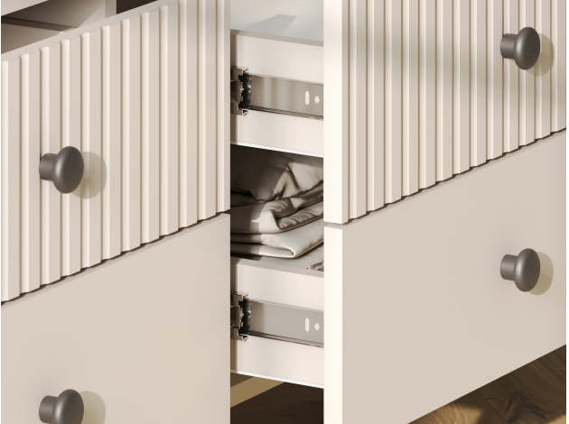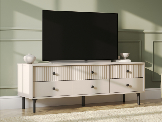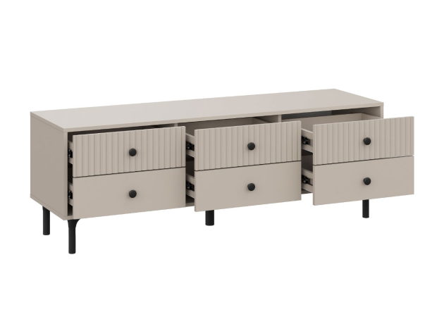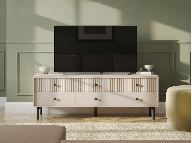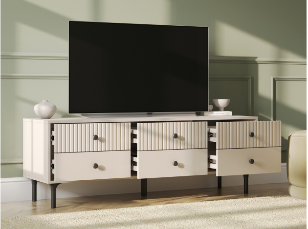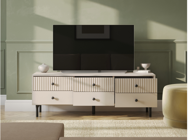 ТВ-тумба Сингапур — практичное решение для размещения телевизора и других мультимедийных устройств. Компактные выдвижные ящики идеально подходят для хранения полезных мелочей. Элегантный дизайн с вертикальной фрезеровкой на фасадах и ножки в цвет фурнитуры делают модель настоящим украшением интерьера.